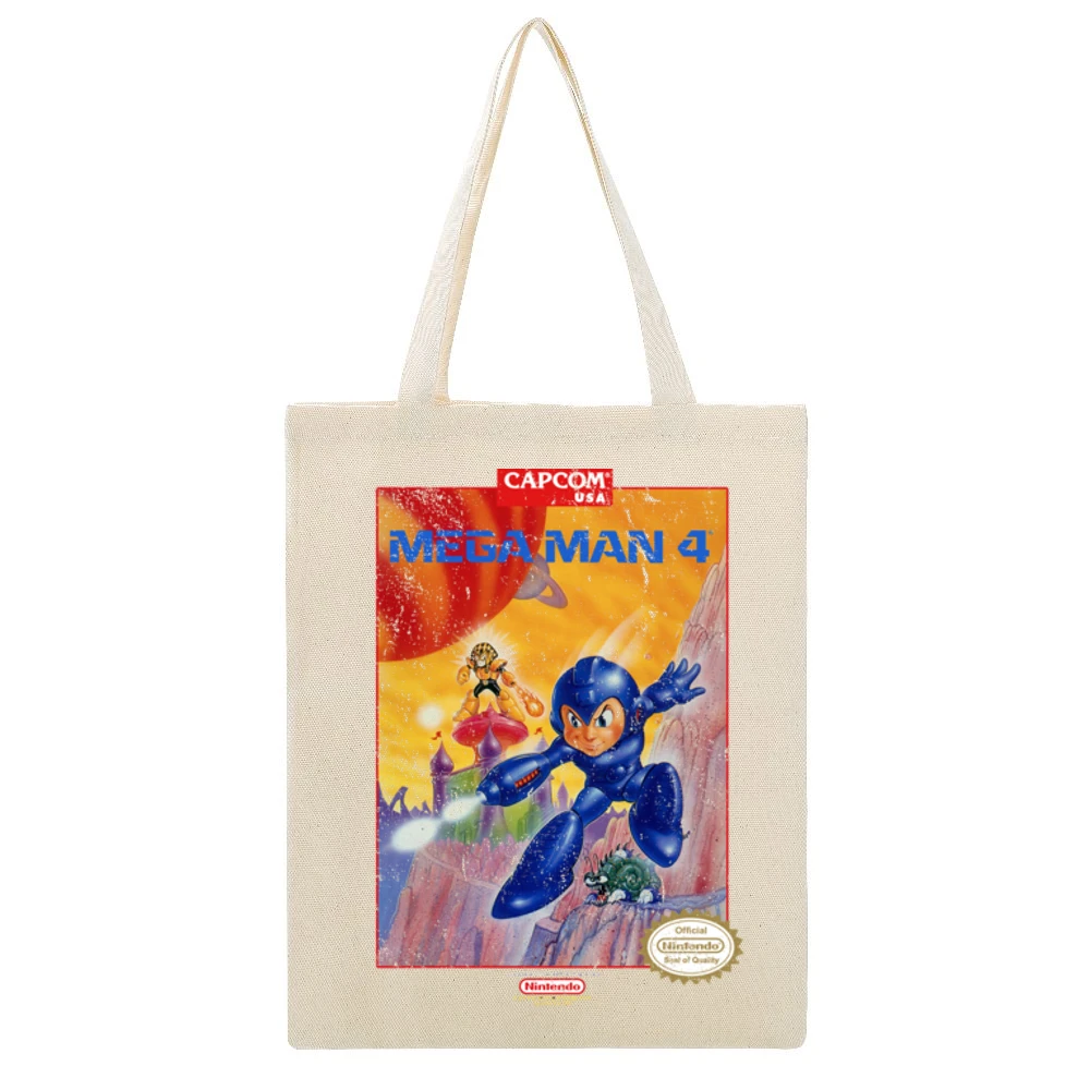 Mega Man 4 Nes Nintendo Old School Retro Video Game Fan Distressed T S Canvas Tote Bag