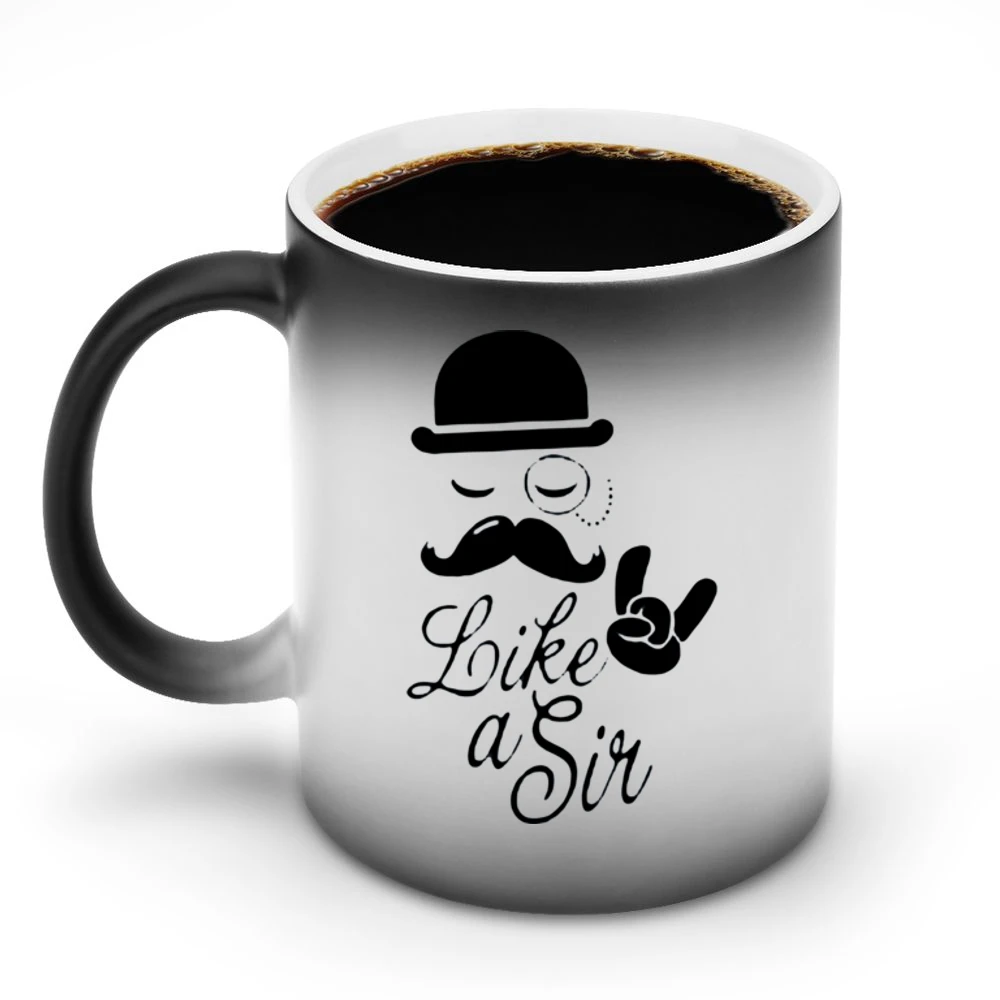 Introducing the ultimate conversation starter: the meme party Like a Sir – fashionable moustache top hat cool comic for mug. This ceramic coffee mug features a unique and whimsical design that perfectly combines style and humor, making it an essential addition to your daily routine.