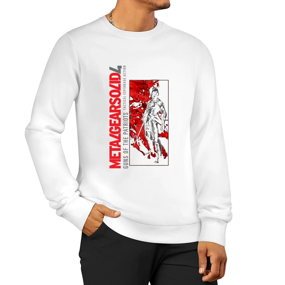 Introducing the ultimate fan apparel: the Metal Gear Solid 4 Pullover Sweatshirt. Perfect for those who appreciate the intricate storytelling and unforgettable characters in this iconic video game series. This sweatshirt combines the nostalgic charm of Metal Gear Solid 4 graphics with the practicality of a cozy pullover, making it the ideal choice for both gaming sessions and casual outings.