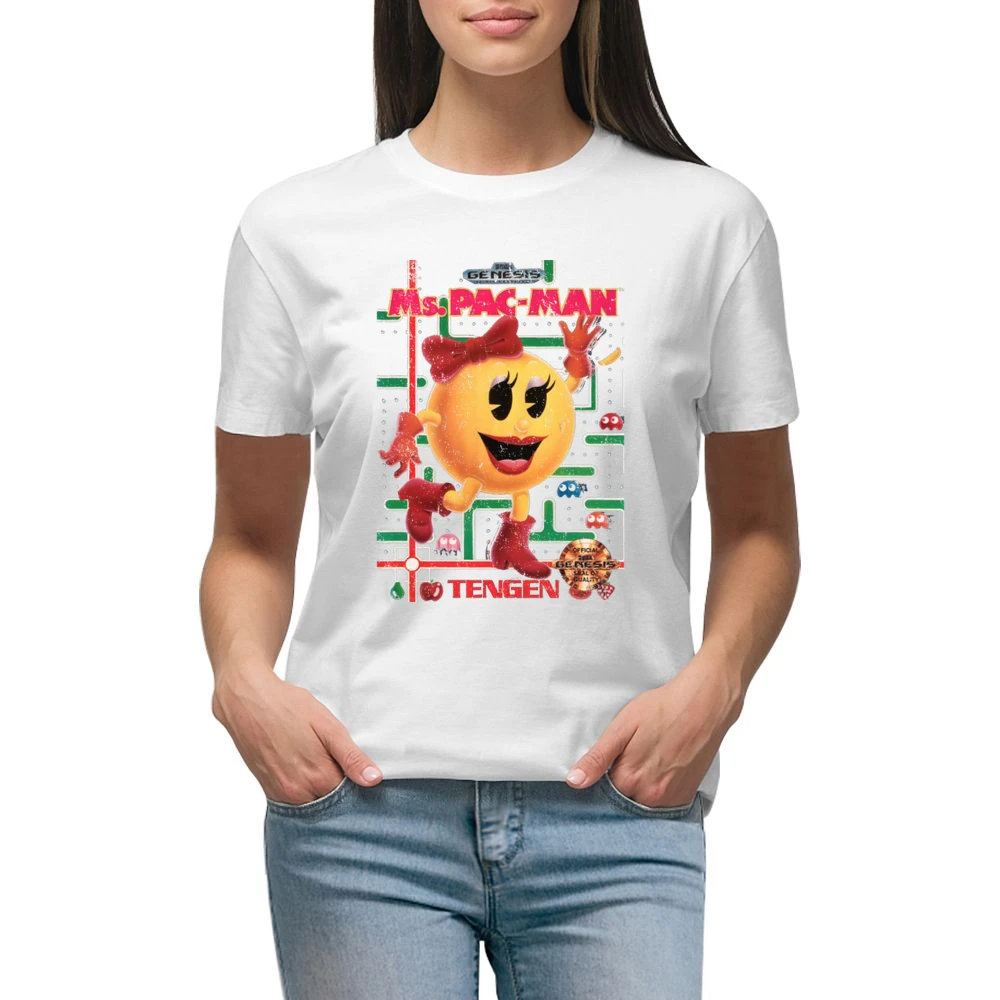 Ms Pacman Sega Genesis Old School Retro Video Game Fan Distressed Blac T-Shirt