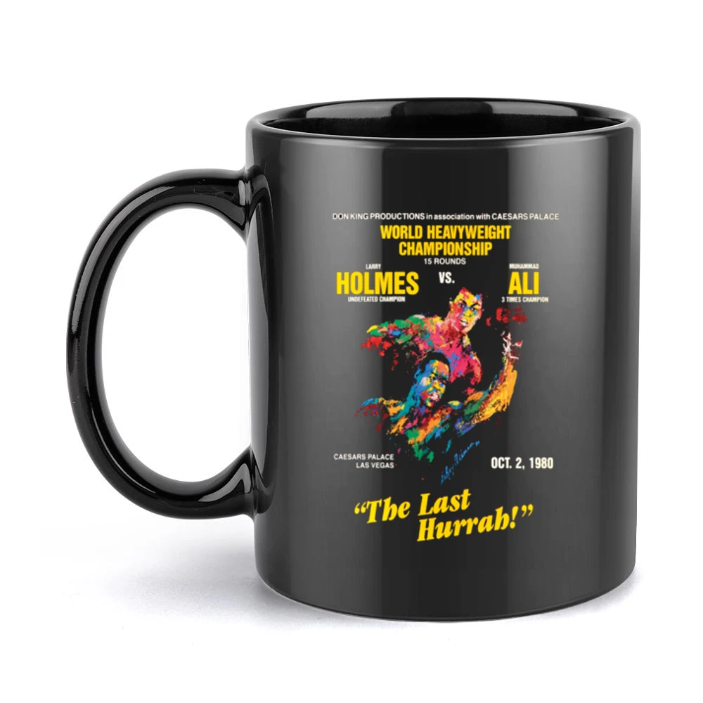 Introducing the iconic Muhammad Ali vs Larry Holmes Fight Poster Mug – a perfect blend of history and functionality that every boxing fan will appreciate. This unique ceramic coffee mug features a stunning design that commemorates one of the most significant matchups in boxing history, making it not just a beverage holder, but a conversation starter.
