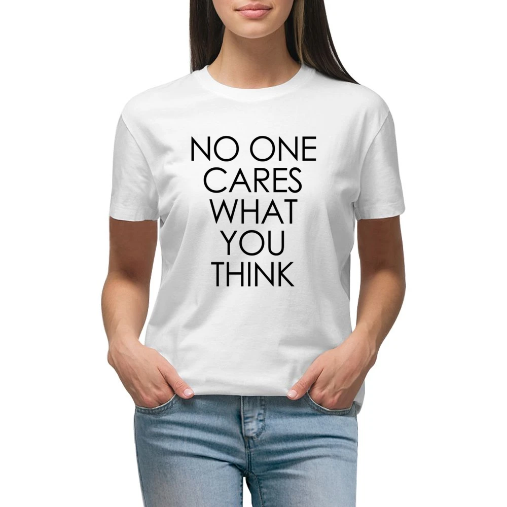The No One Cares What You Think design is an expression of individuality and a nod to the grunge aesthetic that has shaped fashion for decades. Inspired by the rebellious spirit of the 90s, this graphic tee captures the essence of non-conformity. The distressed lettering creates a vintage look that effortlessly combines with high-waisted jeans or layered under a denim jacket, making it a versatile piece for various occasions, from casual outings to music festivals.