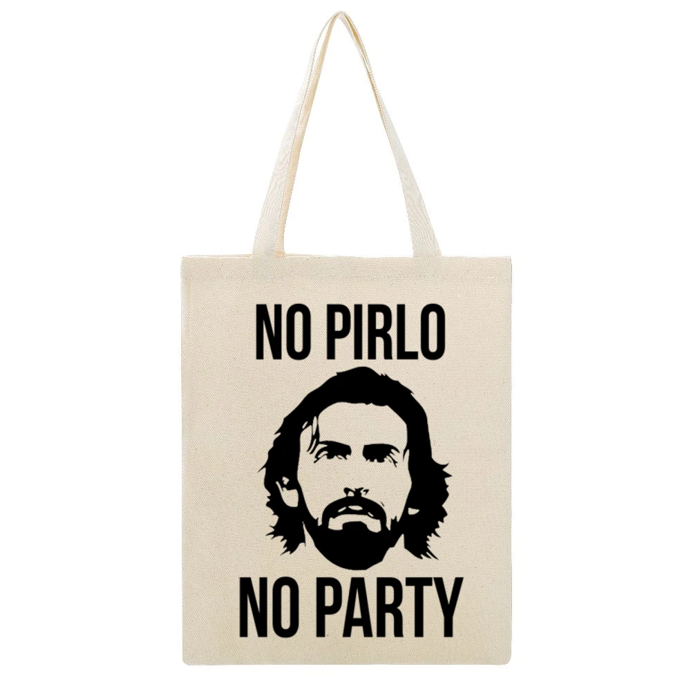 Designed with a striking and whimsical graphic, this canvas tote bag features the classic phrase “No Pirlo No Party,” celebrating the legendary Italian midfielder’s unmatched influence on the pitch. The graphic art not only resonates with avid Juventus supporters but also adds a playful element to your everyday style. Whether you’re heading to a match, running errands, or simply hanging out with friends, this tote bag is sure to spark conversations and showcase your soccer spirit.