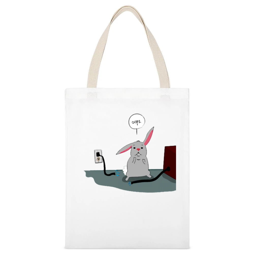In summary, the Oops Funny Rat Rabbit Bite the Power Cable Canvas Tote Bag combines a delightful design with practical functionality, making it a must-have accessory for anyone who loves to express their personality through fashion. Whether you’re looking for a reliable tote for daily adventures or a unique gift for a loved one, this bag fits the bill perfectly.