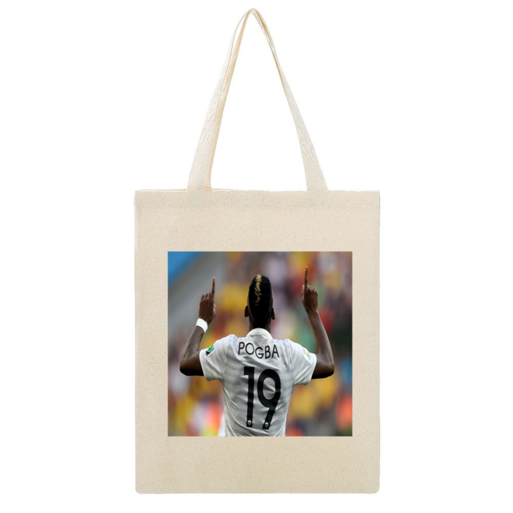 Complementing this striking T-shirt is the versatile Canvas Tote Bag. Crafted from durable cotton canvas, this tote is perfect for carrying your essentials on the go. The bag is not just practical but also stylish, featuring the same vibrant design that celebrates Paul Pogba. Its spacious interior allows you to easily fit items like groceries, gym gear, or even your favorite books, making it an ideal companion for daily errands or a day out at the park. The strong, comfortable handles ensure that you can carry it with ease, while the unique design ensures that you stand out in a crowd.
