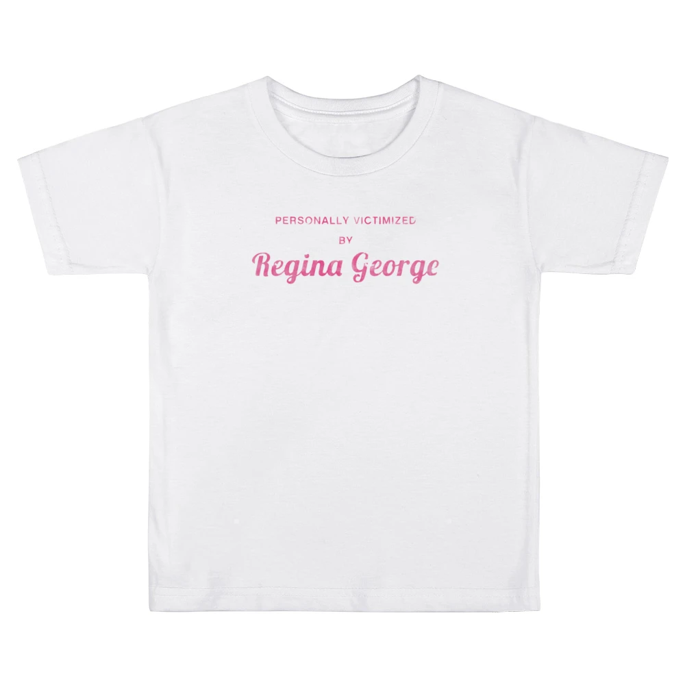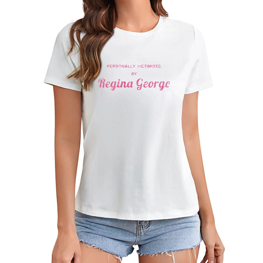 Introducing the Personally Victimized By Regina George Distressed Tee Shirt, a uniquely trendy cotton tee that captures the essence of high school drama with a whimsical twist. This stylish T-shirt is perfect for fans of the iconic film “Mean Girls,” combining a playful design with comfortable wearability.