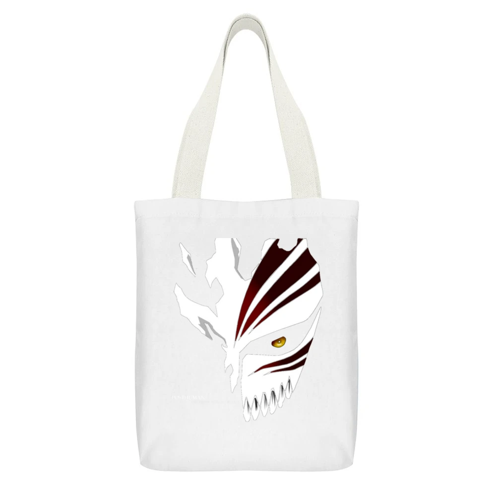 Introducing the ultimate blend of style and functionality: the Post Human Ichigo Kurosaki Scatter Shinigami Hollow Mask Bleach Manga Canvas Tote Bag. This unique tote bag showcases a captivating design inspired by the iconic Bleach manga series, making it not just a bag, but a statement piece for anime lovers and fashion enthusiasts alike.
