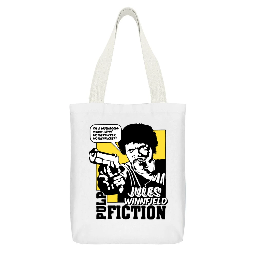 In addition to its eye-catching design and practical application, the Pulp Fiction Ezekiel Quote Canvas Tote Bag embodies a sense of nostalgia that transports you back to the film’s unforgettable scenes. The artistic portrayal of the quote allows you to carry a piece of cinematic history with you everywhere you go. Its versatile design means it’s perfect for any occasion, from casual outings to attending movie nights with friends.