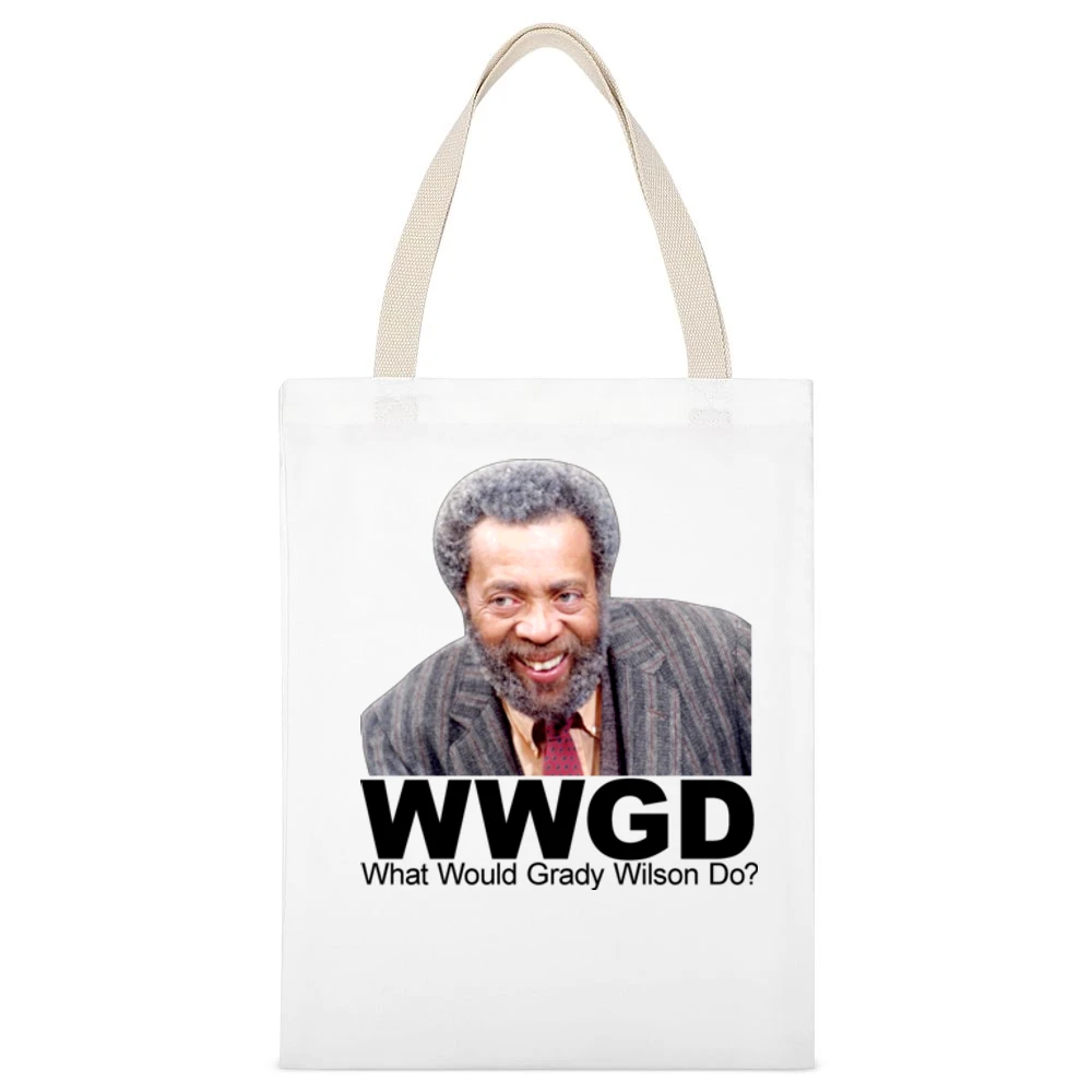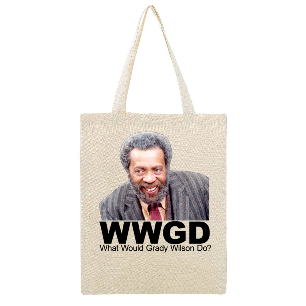In conclusion, the Sanford And Son What Would Grady Wilson Do Canvas Tote Bag stands out as a versatile and trendy accessory. With its robust construction, spacious design, and nostalgic artwork, it captures the essence of classic comedy while being perfect for modern-day use. Don’t miss out on this unique canvas tote that effortlessly combines style, function, and a touch of humor!