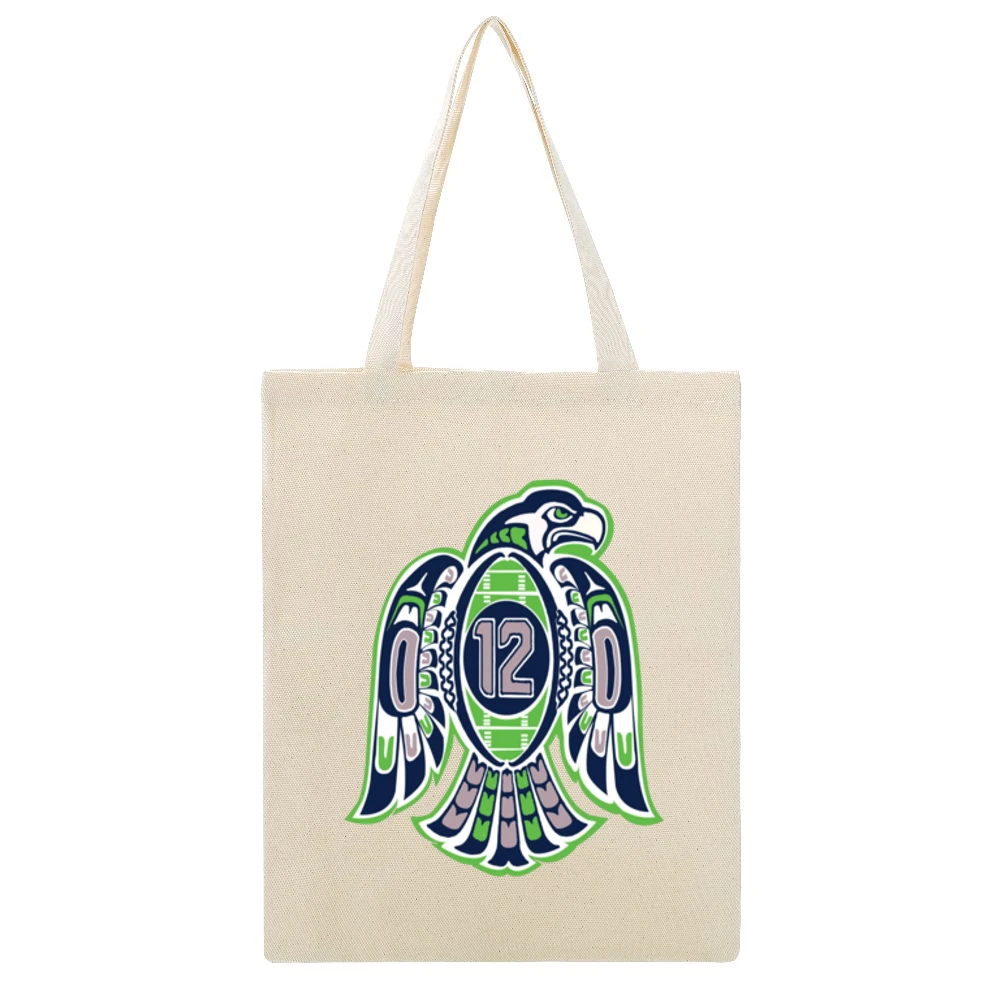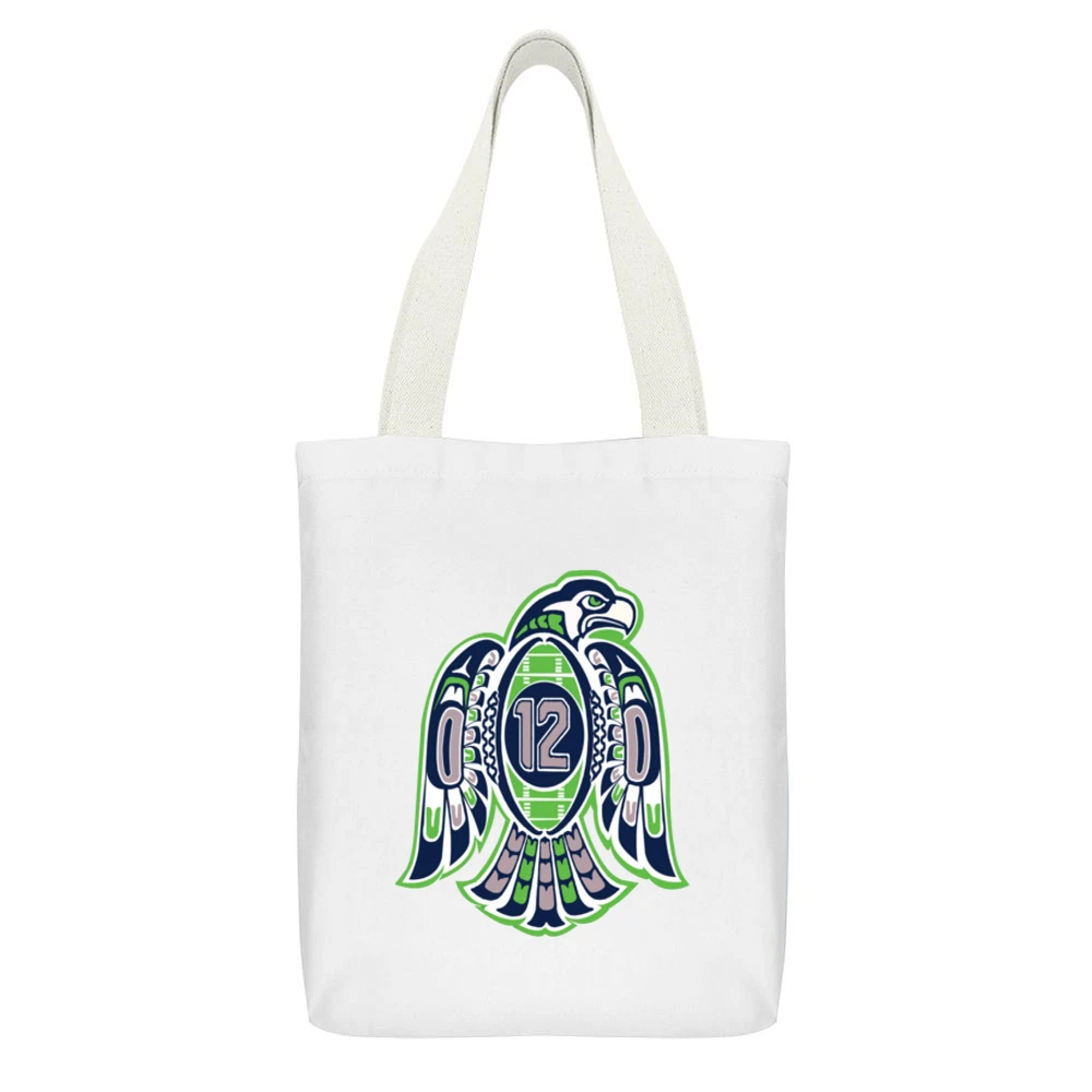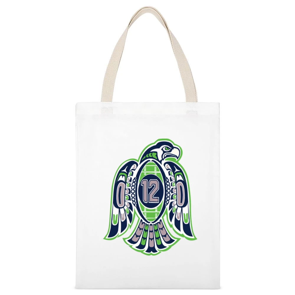 The 12th Man has long symbolized the incredible support that Seattle Seahawks fans offer their team. This canvas tote bag prominently features the iconic 12th Man logo, beautifully crafted to showcase your loyalty to one of the most passionate fan bases in sports history. Its eye-catching design not only reflects your team pride but also serves as a conversation starter among fellow fans, making it ideal for tailgating, game days, or casual outings.