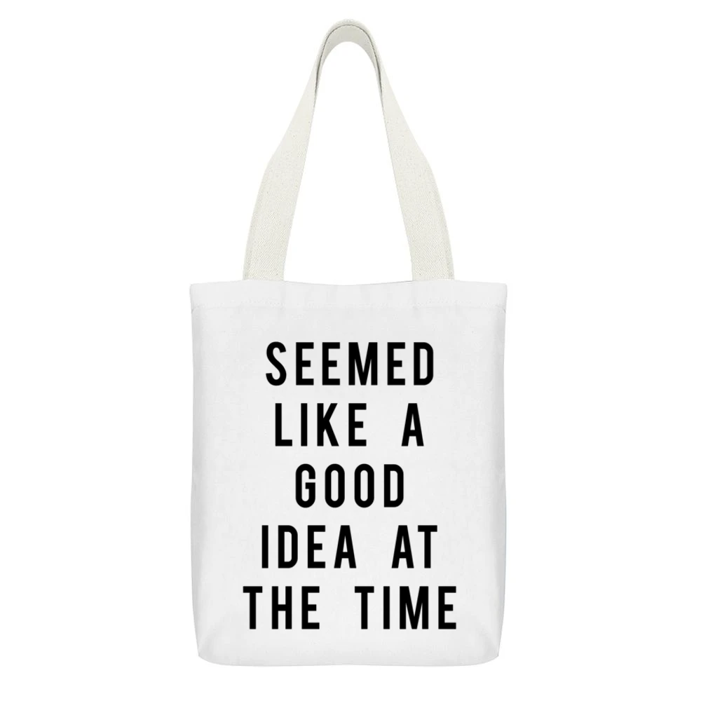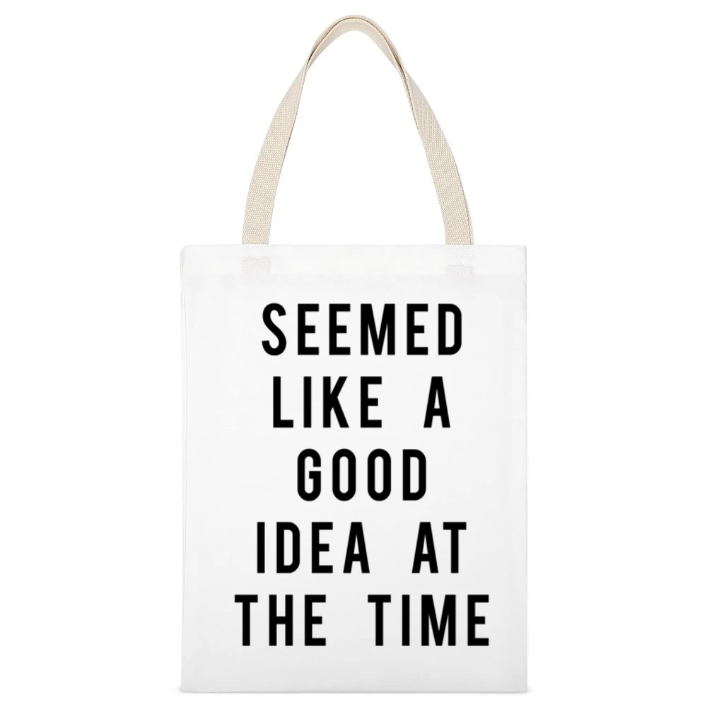 Introducing the “Seemed Like A Good Idea At The Time” Funny Graphic Tee Shirt Canvas Tote Bag, designed for those who embrace humor and practicality in their everyday lives! This delightful piece combines a playful graphic that perfectly captures the essence of spontaneity with the durability and convenience of a premium canvas tote bag.
