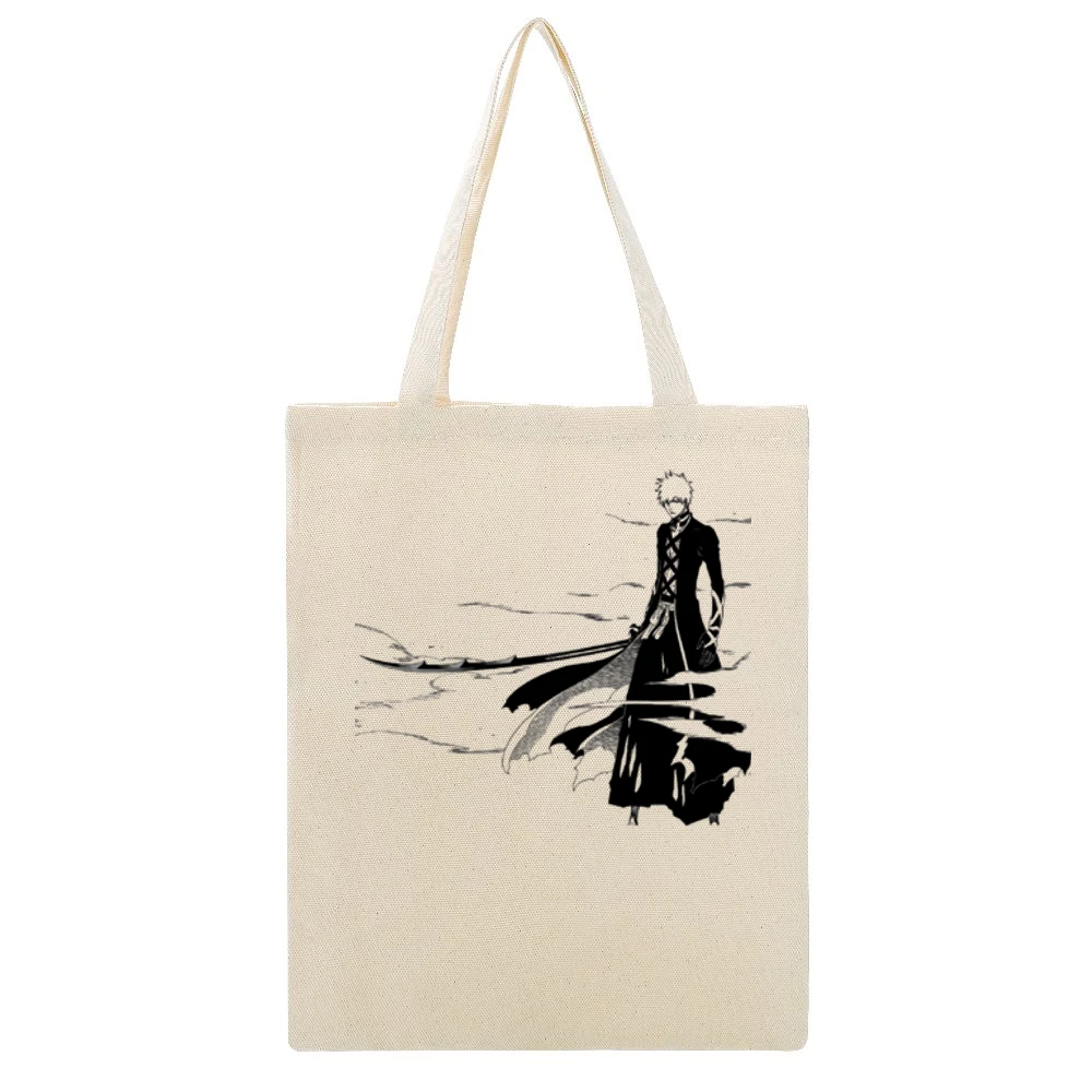Introducing the Shinigami Kurosaki Ichigo Black Bankai Bleach Anime T Canvas Tote Bag, the perfect blend of artistic expression and practical utility. Featuring an iconic design inspired by Tite Kubo’s beloved manga, this tote bag is not only a stylish accessory but also a functional companion for everyday use.
