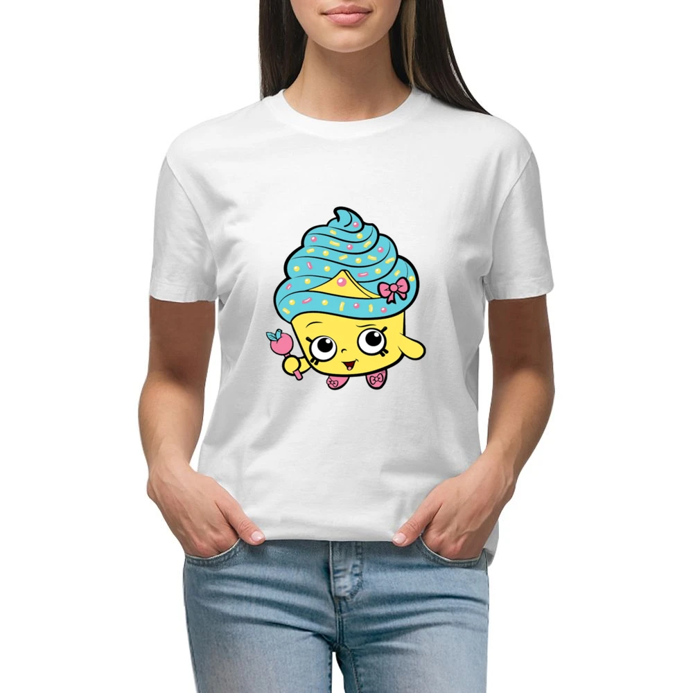 The *Cupcake Queen* design is not just a character; it embodies a playful spirit filled with joy and creativity. Known for her sweetness and charm, this character resonates with anyone who has a love for fun and delicious treats. The vivid print brings her to life, creating an eye-catching effect that shines in any setting. Whether you’re looking to spark a conversation at a themed party or simply want to express your love for Shopkins, this t-shirt serves as your ultimate choice.