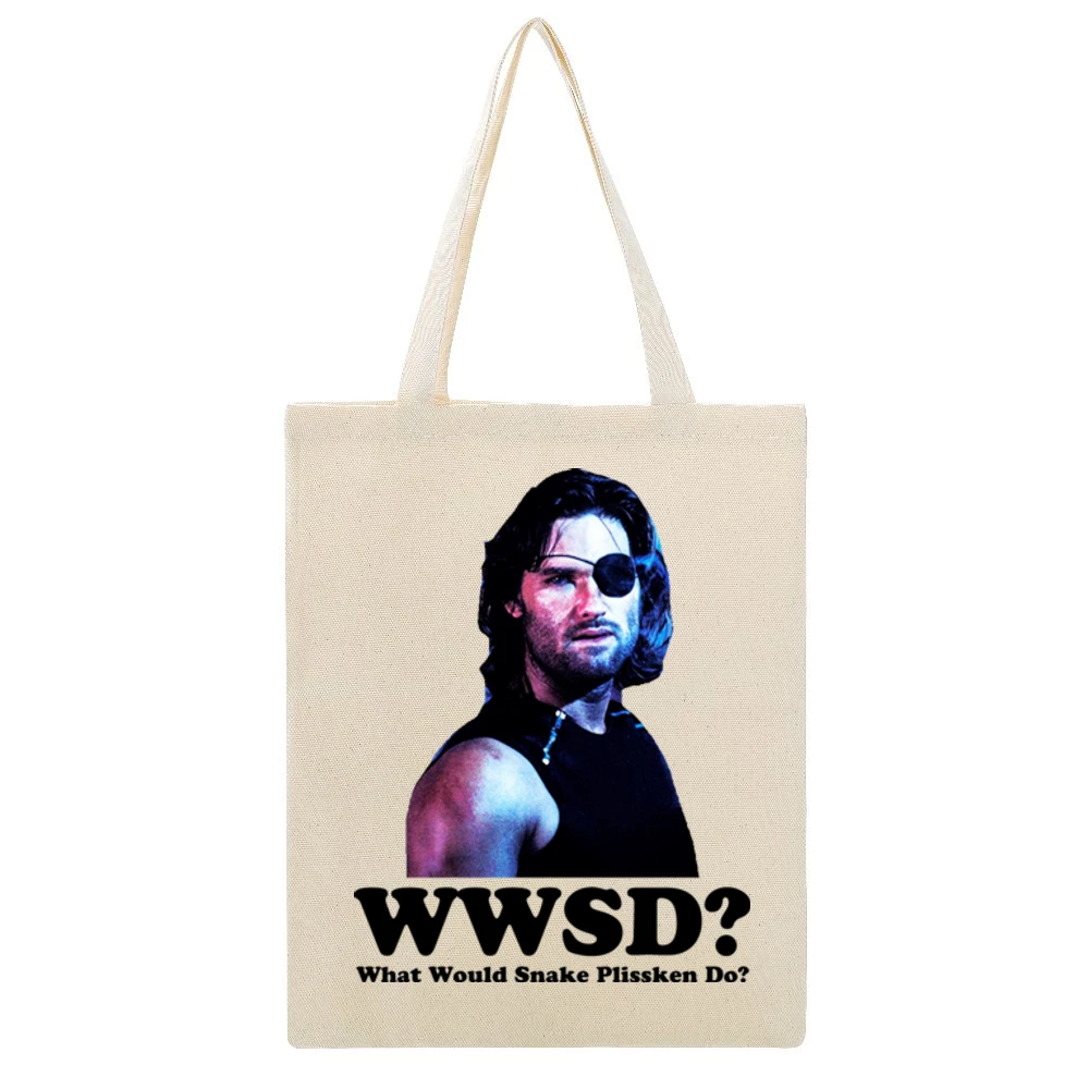 Introducing the **Snake Plissken What Would He Do Escape from New York Canvas Tote Bag** – a perfect blend of nostalgia and practicality. This stylish tote showcases an iconic design inspired by the legendary character Snake Plissken, making it a must-have for both fans of the film and fashion-forward individuals.