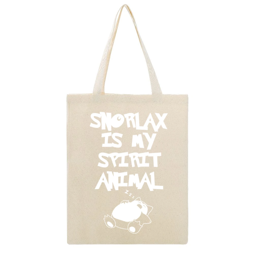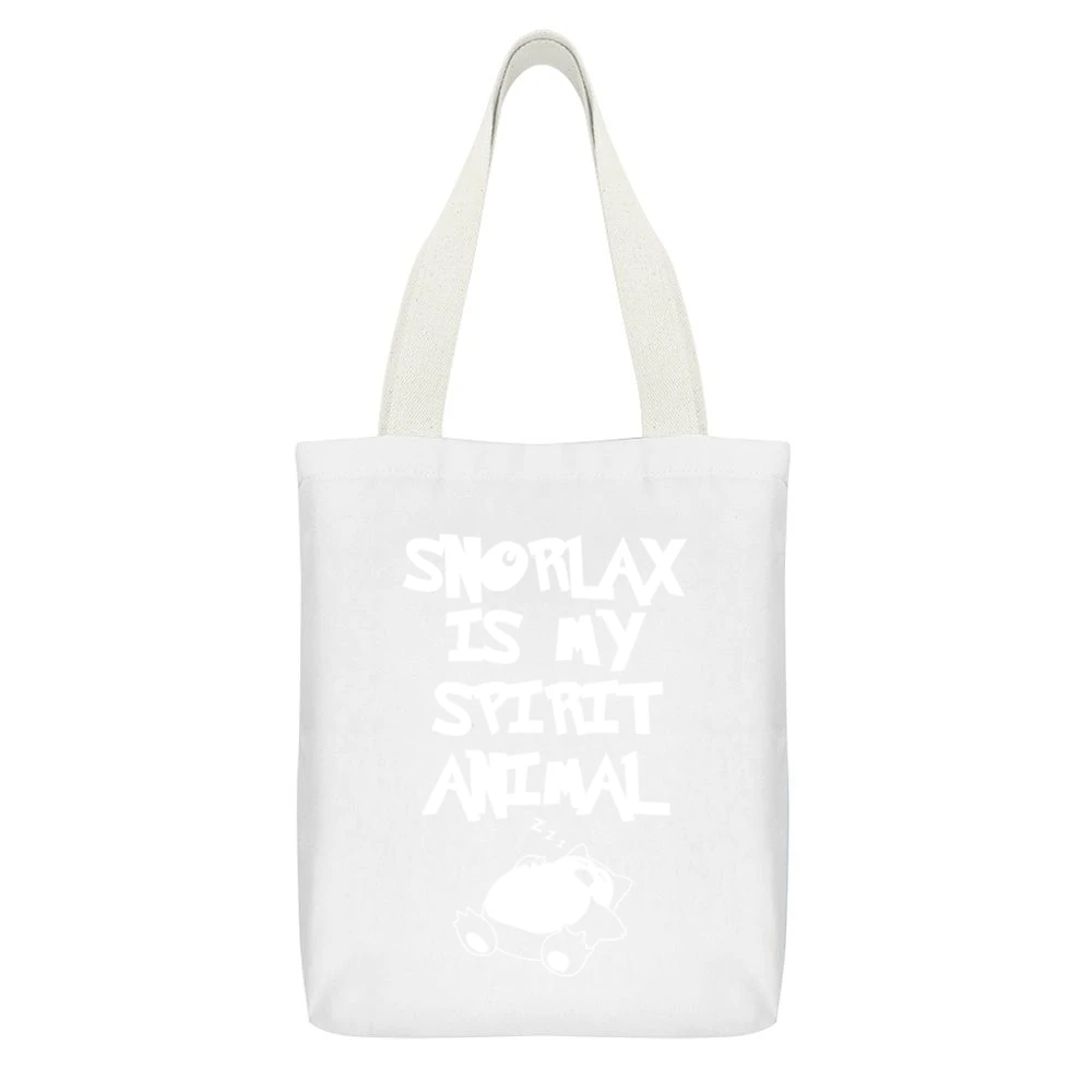 Introducing the ultimate in humorous fashion—our Snorlax Is My Spirit Animal Funny Pokémon Go Apparel Graphic Canvas Tote Bag. This eye-catching design combines playful nostalgia with practicality, making it the perfect accessory for Pokémon fans and everyday use alike.