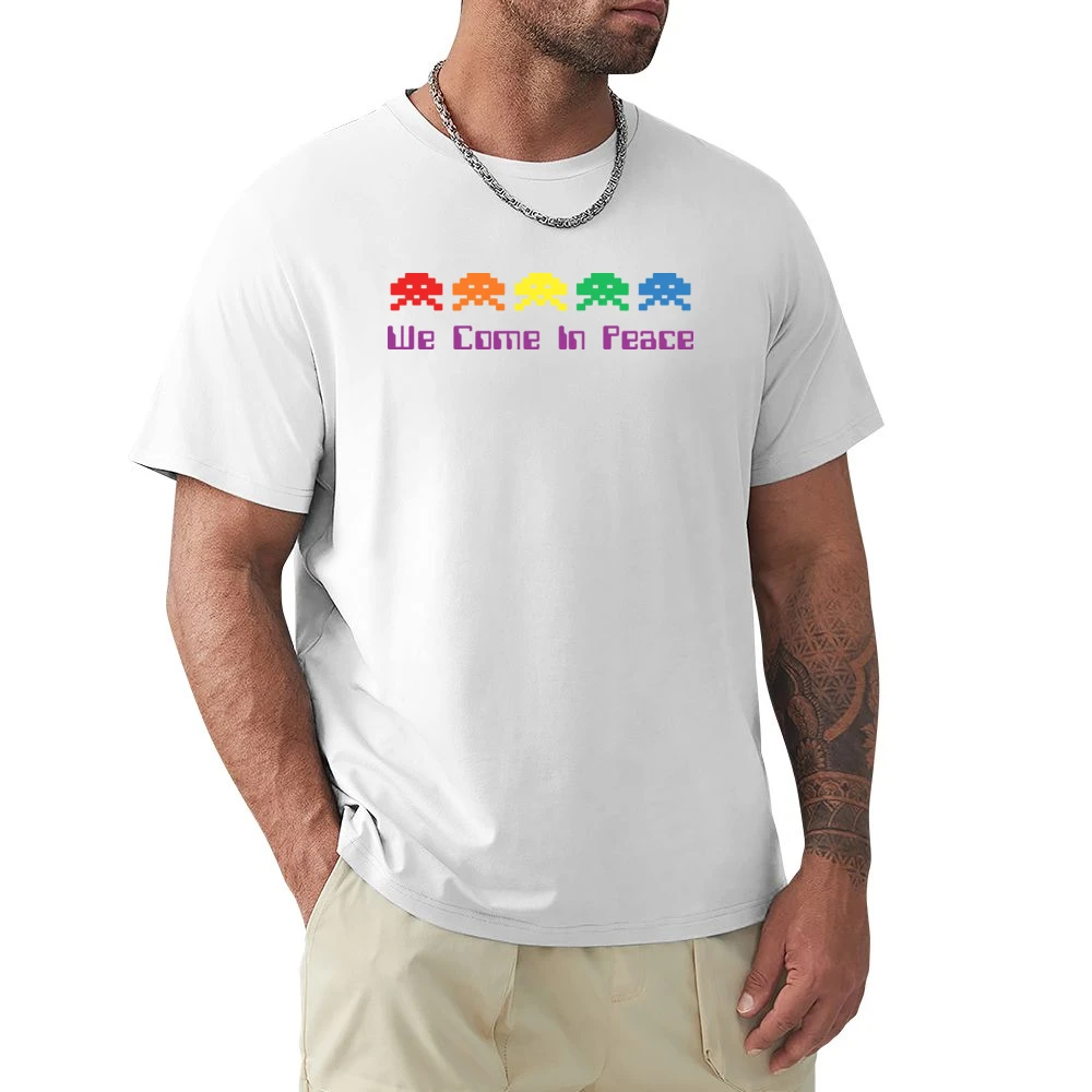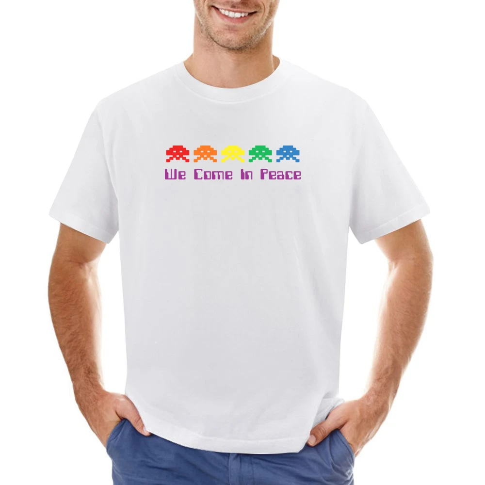 The Space Invaders Come In Peace T-Shirt draws inspiration from the iconic 1978 arcade game that changed the gaming landscape forever. With its playful aliens depicted in bright colors, this shirt not only celebrates gaming nostalgia but also sends a positive message of peace and inclusiveness. The design stands out with its eye-catching graphics, making it an excellent conversation starter at any gathering.