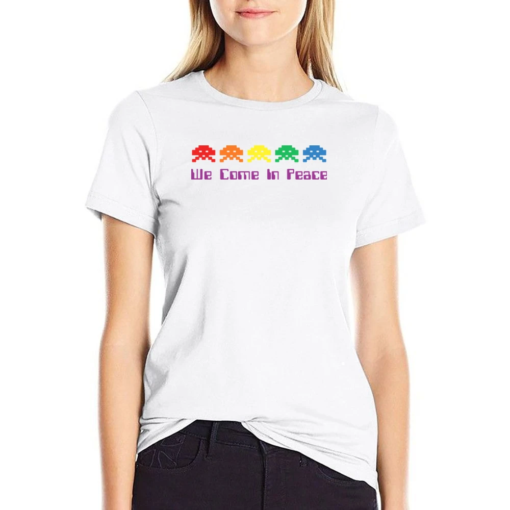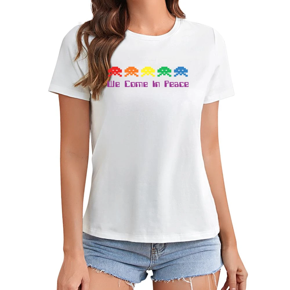 Introducing the Space Invaders Come In Peace T-Shirt, where retro gaming meets modern style! This unique tee features a vibrant design inspired by classic arcade games, perfect for gamers and fashion enthusiasts alike.