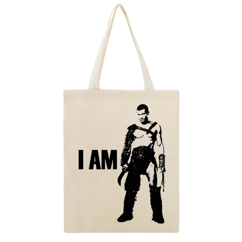 The bag itself is designed with practicality in mind. With ample storage space, the **Spartacus I Am Canvas Tote Bag** is perfect for carrying your essentials. From groceries to gym gear, this versatile bag adapts easily to your lifestyle. Its sturdy construction makes it ideal for daily use, ensuring that you can confidently take it anywhere—from your daily commute to casual outings, or even to a picnic with friends.
