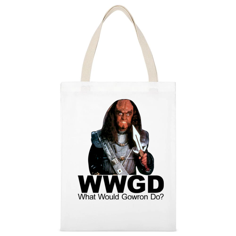 Introducing the Star Trek What Would Gowron Do Canvas Tote Bag—a perfect blend of sci-fi culture and practicality that makes every outing exciting and functional. Whether you are a Star Trek aficionado or simply in need of a reliable bag, this canvas tote is designed to catch eyes while serving your everyday needs.