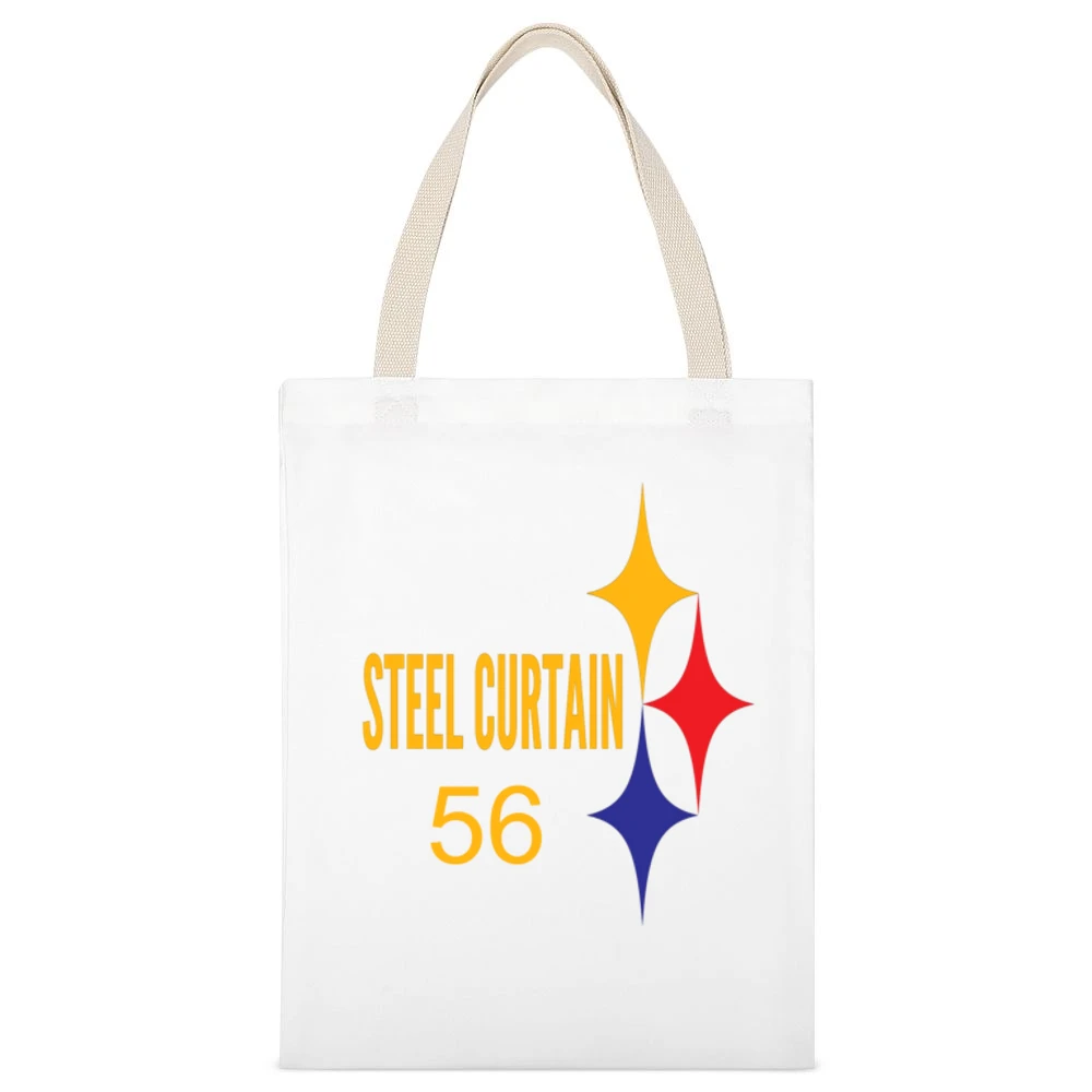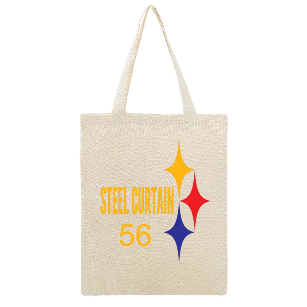 Whether you’re a fashion enthusiast looking to make a statement or someone who values utility, the Steel Curtain 56 Canvas Tote Bag is the perfect addition to your collection. Embrace its unique design and durable structure, and let this tote bag accompany you on all your quests. Make it your go-to bag for daily use or a thoughtful gift that embodies both style and practicality.