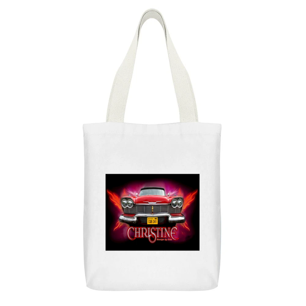 The intricate design on this canvas tote bag draws inspiration from the themes of the novel, capturing the eerie and captivating essence of Christine, the vintage car with a mind of its own. The bold illustrations and colors evoke a sense of nostalgia and excitement, making it a great conversation starter. Whether you’re heading to the bookstore, a picnic, or just running errands, this tote bag adds a touch of personality to your outfit.