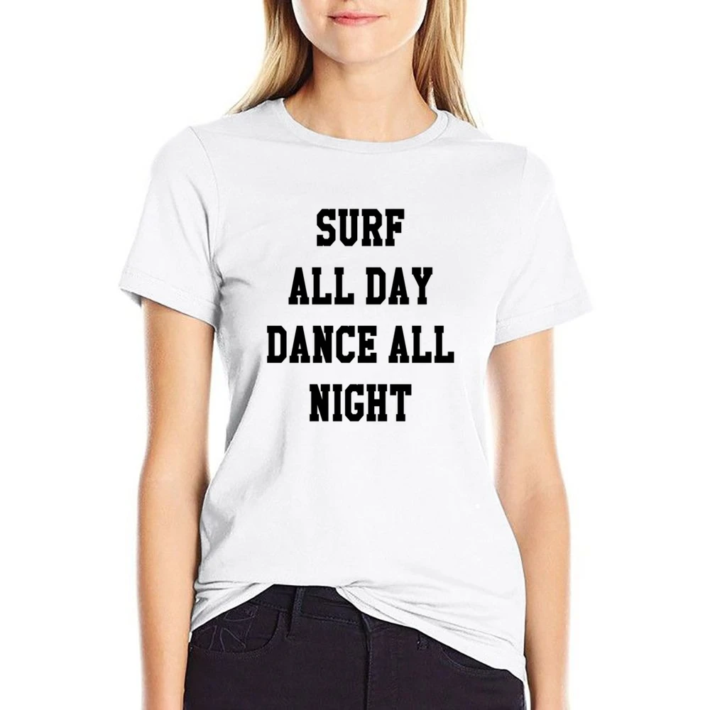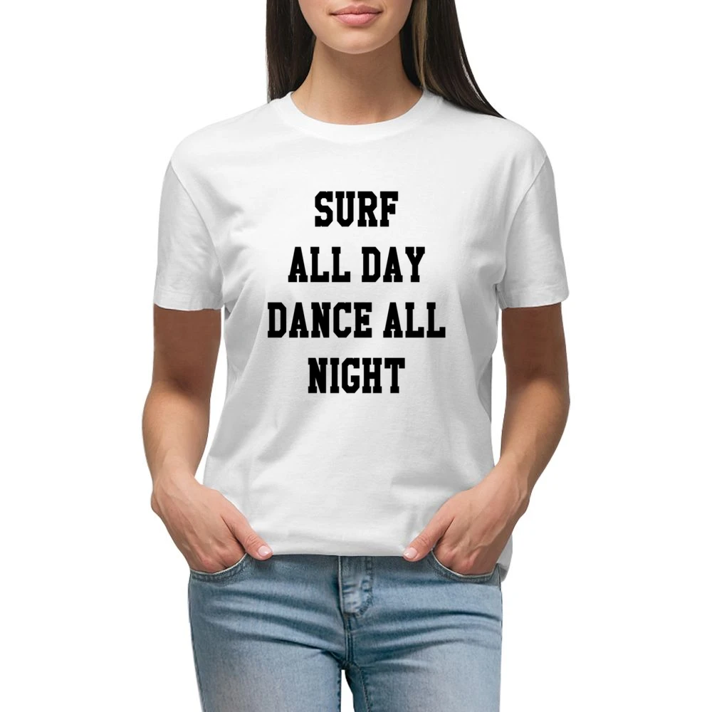 Embrace your adventurous spirit with the Surf All Day Dance All Night Fun Tee Shirt. Get yours today and experience the perfect blend of style and comfort that will have heads turning and hearts dancing!