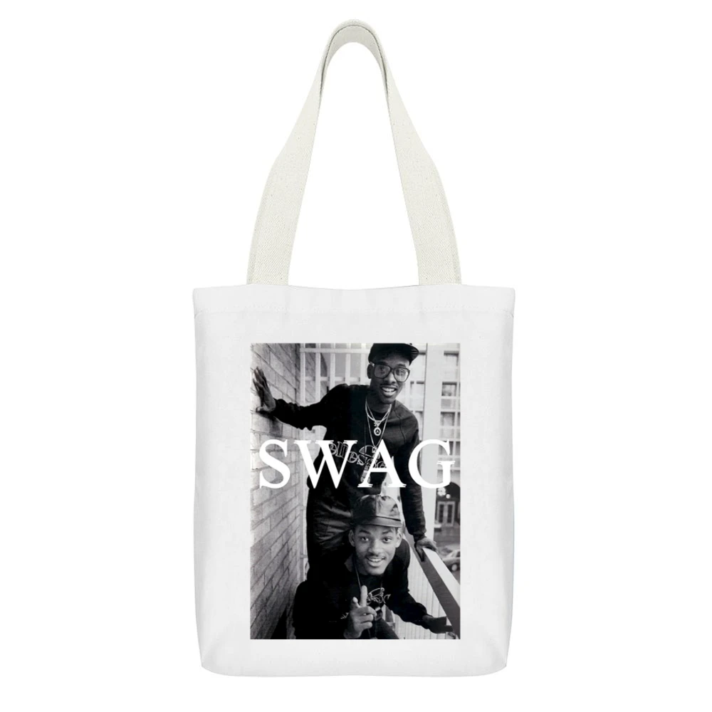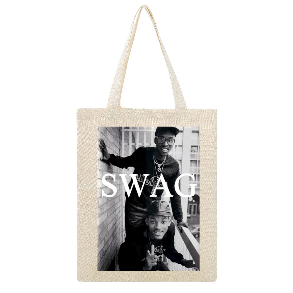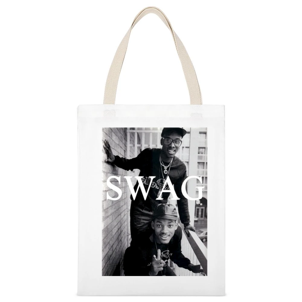 Additionally, the tote bag is eco-friendly, serving as a sustainable alternative to plastic bags. Choosing this Swag Vintage Tote not only supports your unique style but also contributes positively to the environment. Perfect for gift-giving, it makes a thoughtful present for friends, family members, or fellow hip-hop enthusiasts, ensuring they can showcase their love for the Fresh Prince in everyday life.