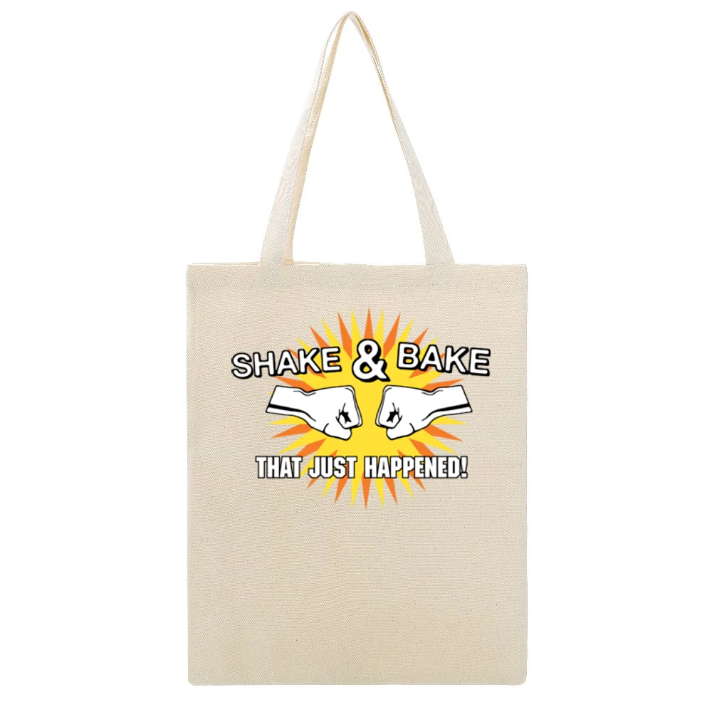 Inspired by the high-octane world of NASCAR, the design of our tote reflects a sense of fun and adventure. The catchy “Shake and Bake” phrase resonates with fans who appreciate the thrill of racing and the humor that comes with it. This canvas tote encapsulates a moment in pop culture history, making it not only a practical item but also a conversation starter. It’s an ideal gift for movie lovers, racing enthusiasts, or anyone who cherishes a good laugh.