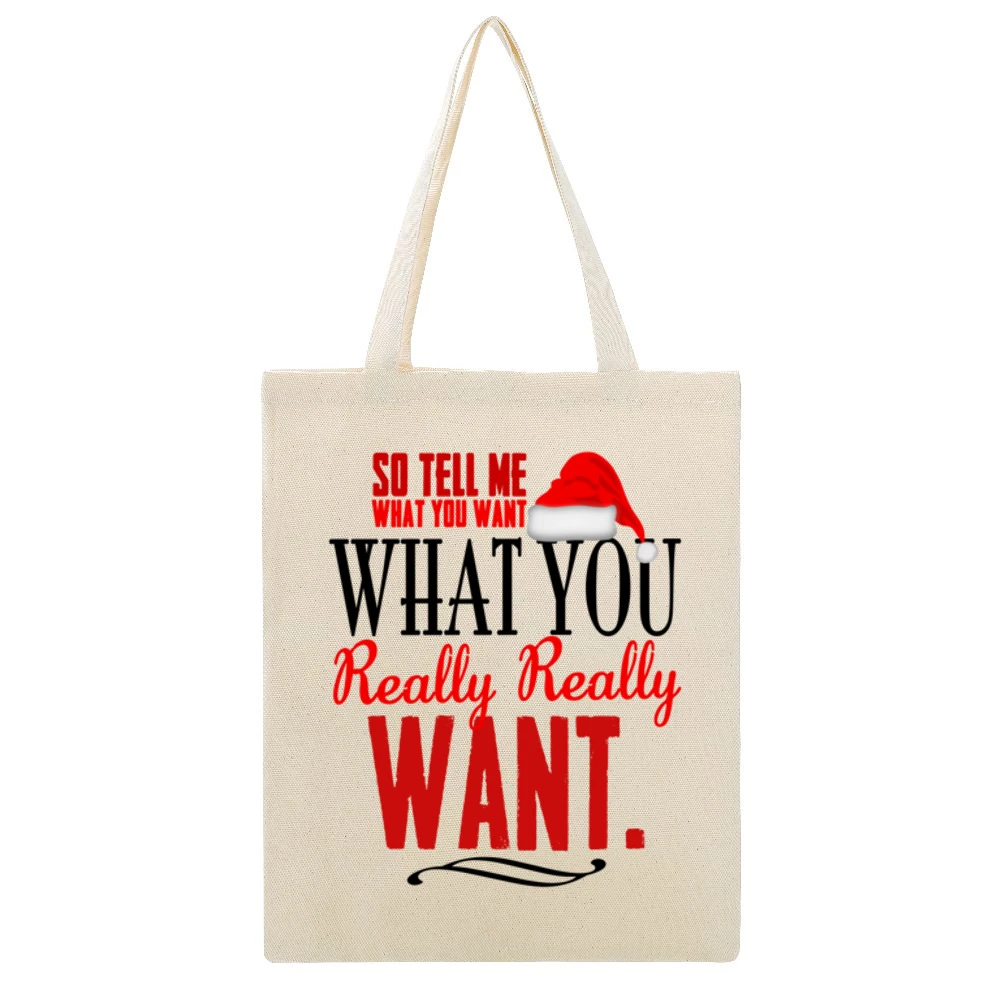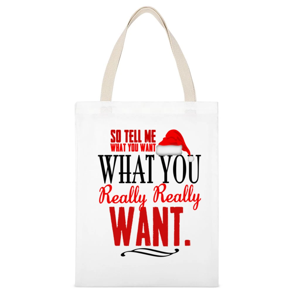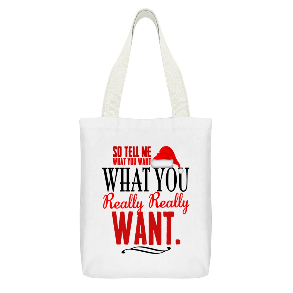 The versatility of the Tell Me What You Want Fun Christmas Spice Girls Tee Shirt Canvas Tote Bag means it can also serve as a delightful gift for friends and family. Imagine the smiles on their faces when they unwrap this functional yet fun accessory during the holiday season. This bag not only makes a thoughtful present but also showcases your ability to pick unique gifts that stand out from the crowd!