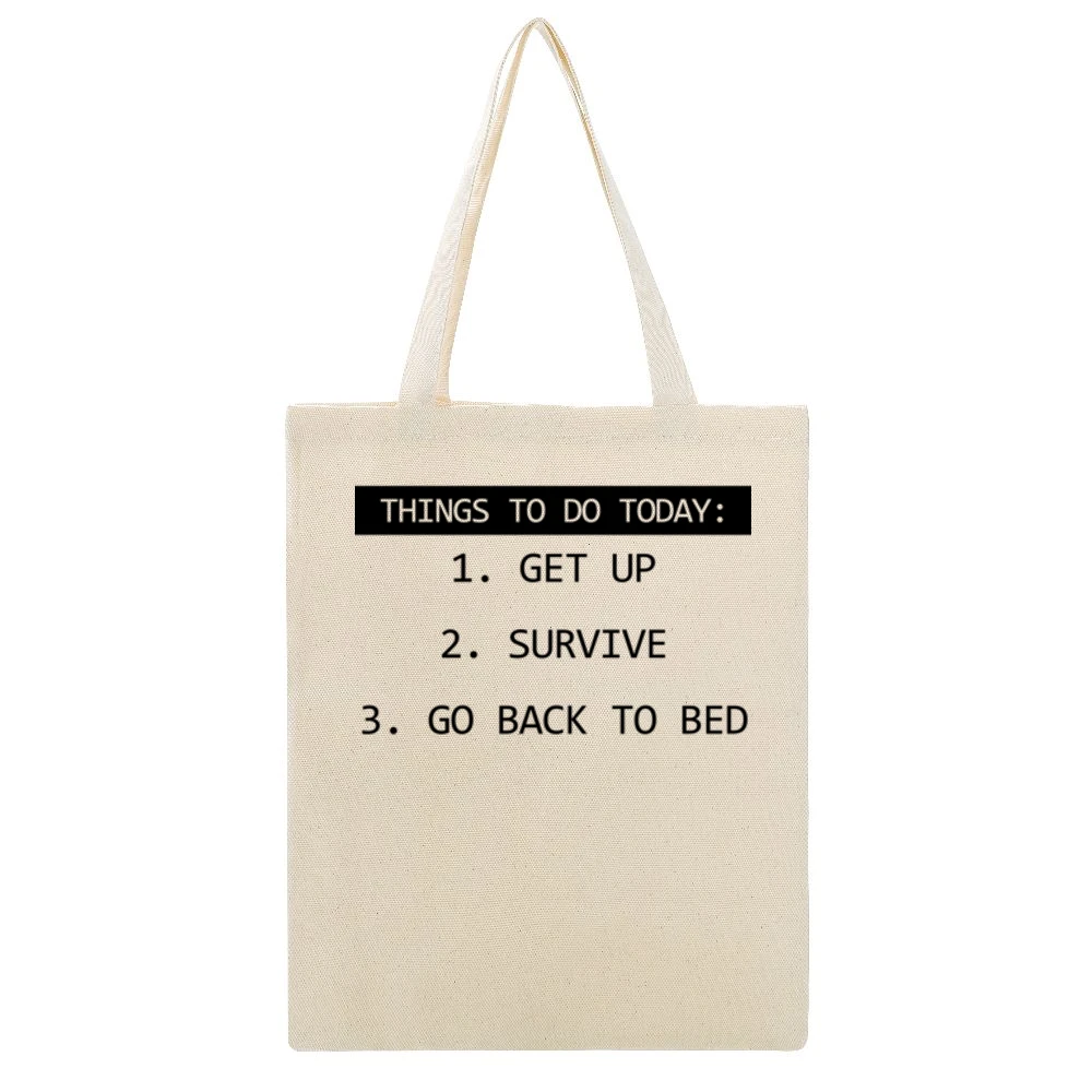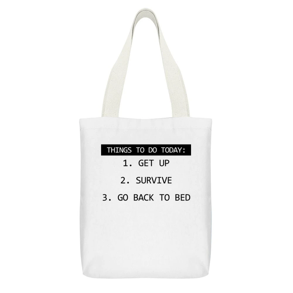 Things To Do Today Back To Bed Funny Tee Shirt Canvas Tote Bag