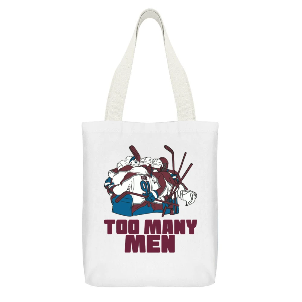 Introducing the **Too Many Men Nazem Kadri Parade White Canvas Tote Bag**, a perfect blend of style and functionality. Featuring a vibrant design that celebrates the iconic Nazem Kadri moment, this tote bag not only showcases your love for hockey but also provides ample space for your daily essentials.