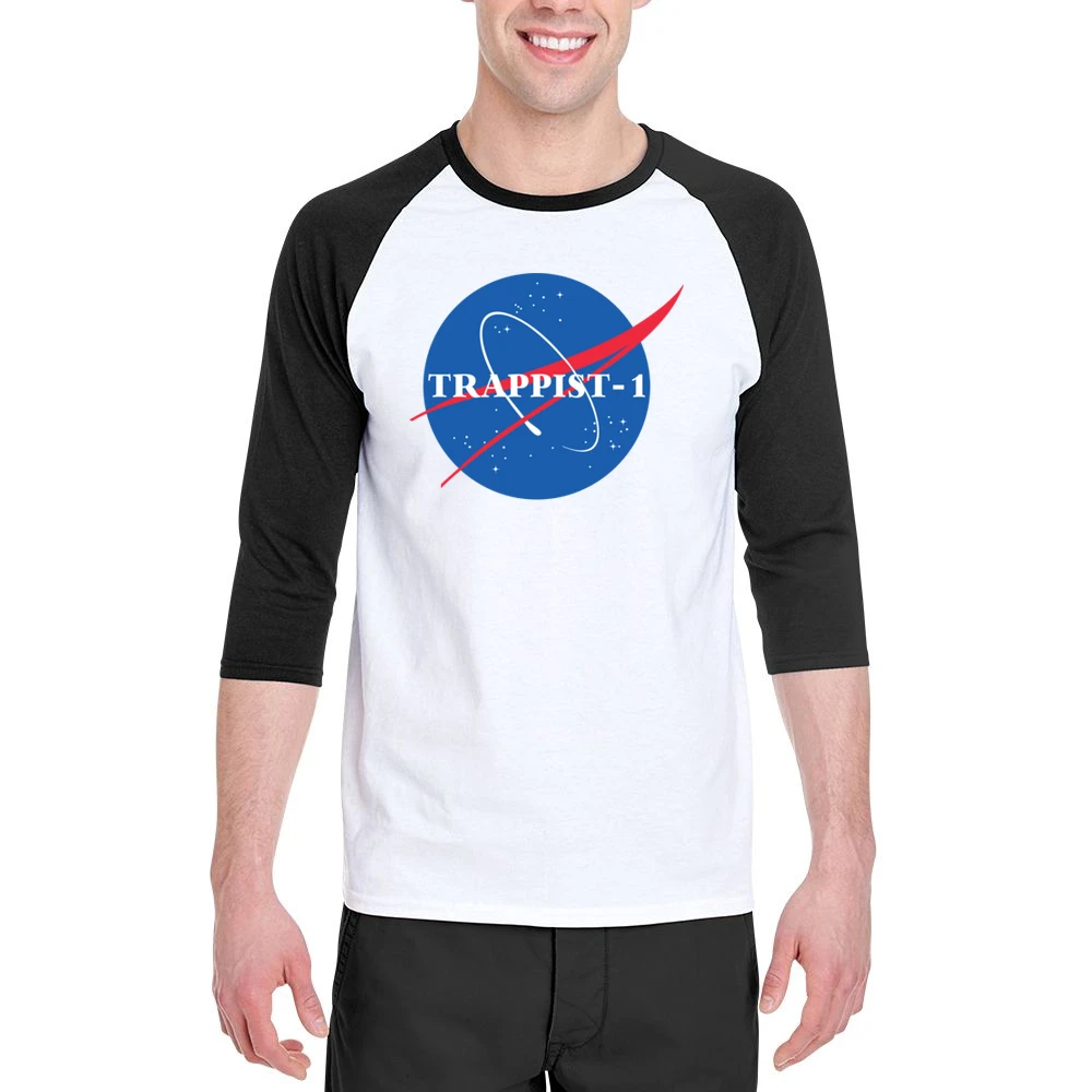 Celebrate the beauty of the cosmos and showcase your unique personality with the Trappist 1 NASA Logo Parody New Planets Space T-Shirt. Make it your go-to apparel for every occasion, and let your love for the universe shine through. Order yours today and get ready to turn heads while keeping the spirit of exploration alive!