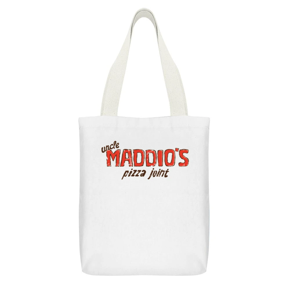 Introducing the Uncle Maddios Pizza Joint Fast Food Restaurant Distressed Look Canvas Tote Bag – a perfect blend of style and practicality that showcases your love for delicious pizza while serving as a reliable everyday accessory.