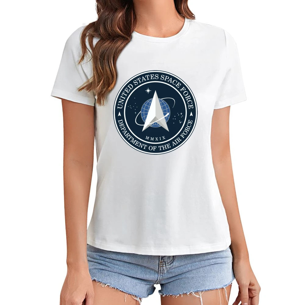 In summary, the **United States Space Force Logo White T-Shirt** is more than just clothing; it’s a tribute to the pioneers of space exploration and a stylish addition to your collection. Show your support and pride by wearing this exquisite t-shirt, an ideal choice for any occasion or just a day out! Get yours today and be part of an elite community honoring the future of space!
