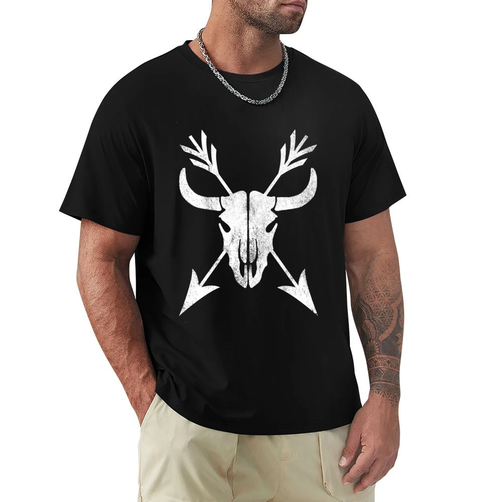 Introducing our Vintage Skull Horns And Arrows Distressed Tee Shirt—a unique blend of edgy design and casual comfort. This T-shirt not only showcases a striking vintage skull design prominently adorned with horns and arrows but also offers a relaxed fit for all-day wear.