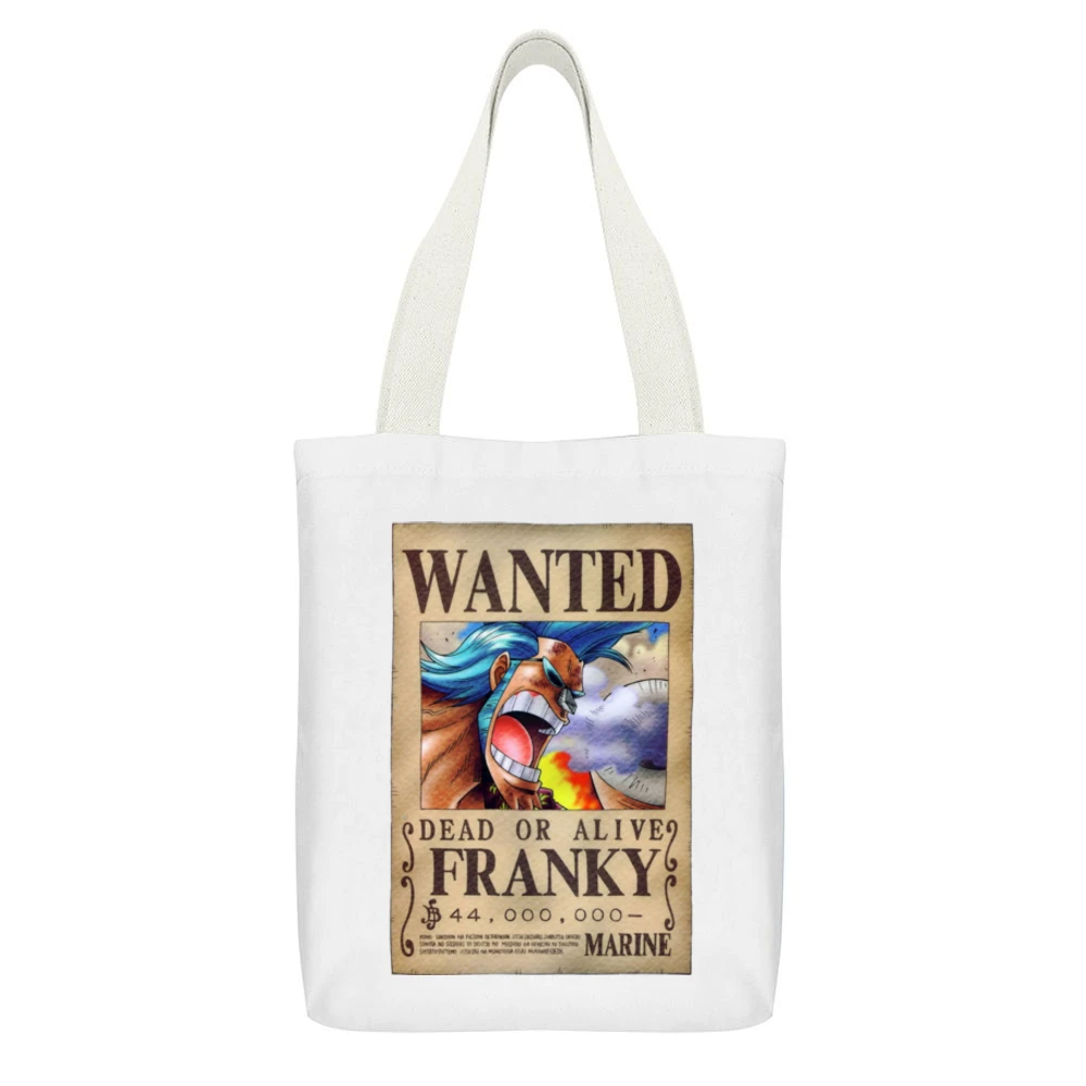 But this isn’t just a bag; it’s a statement piece that reflects your personality and interests. The Water Seven Cyborg Franky Wanted Poster Tote Bag serves as an excellent conversation starter and a unique gift for fellow anime aficionados. Imagine giving this thoughtful present to a friend who shares your passion for One Piece or using it as a delightful addition to your own anime merchandise collection. Each time you step out with it, you’ll be reminded of the thrilling adventures of the Straw Hat Pirates.