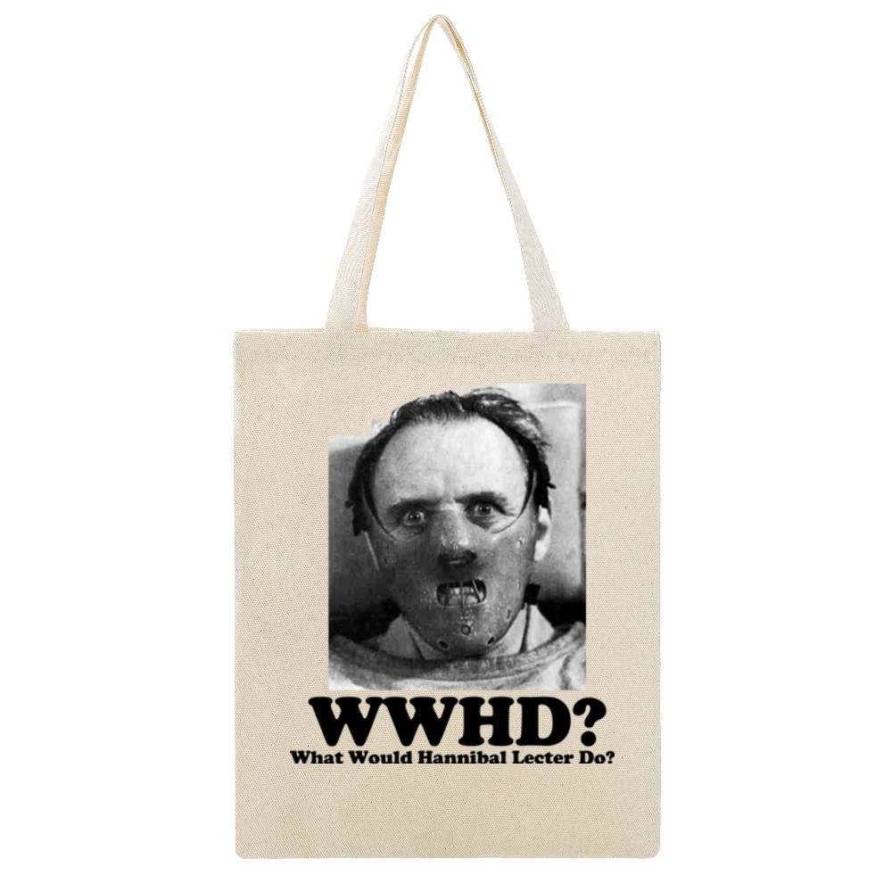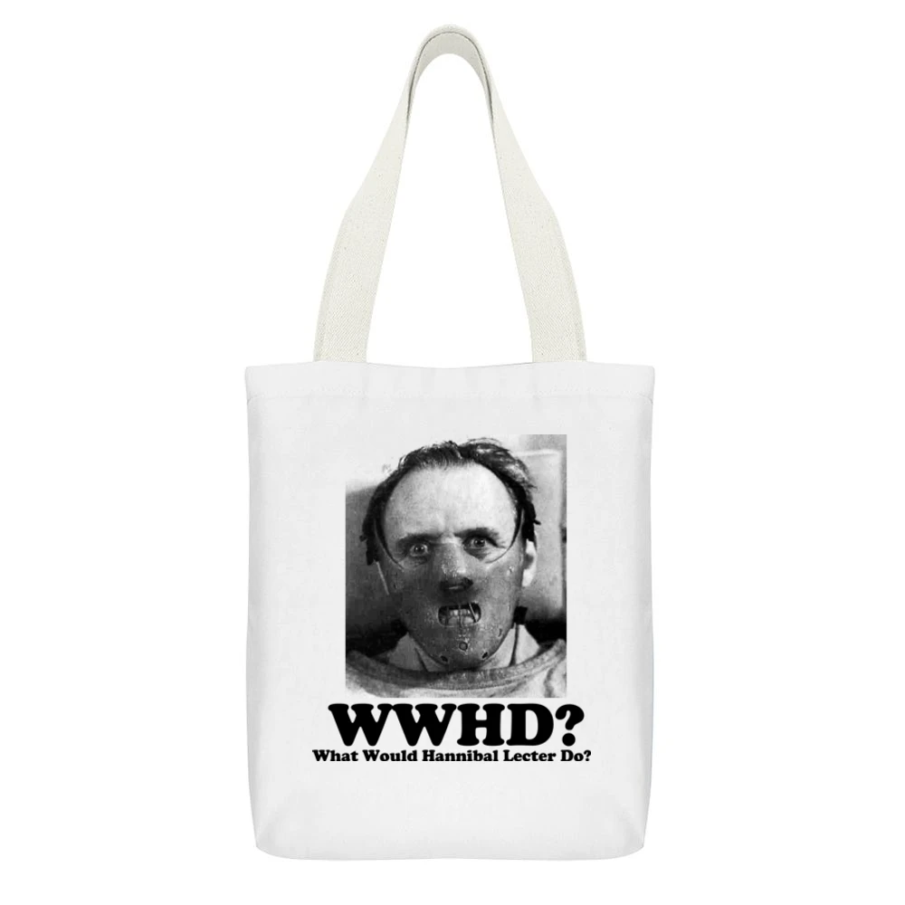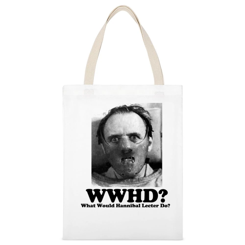Additionally, the “What Would Hannibal Lecter Do Canvas Tote Bag” is perfect for gifting. Consider it for birthdays, holidays, or as a quirky surprise for friends and family who appreciate unique fashion. Its sophisticated design appeals to fans of the character and anyone who enjoys a blend of humor and style in their accessories.