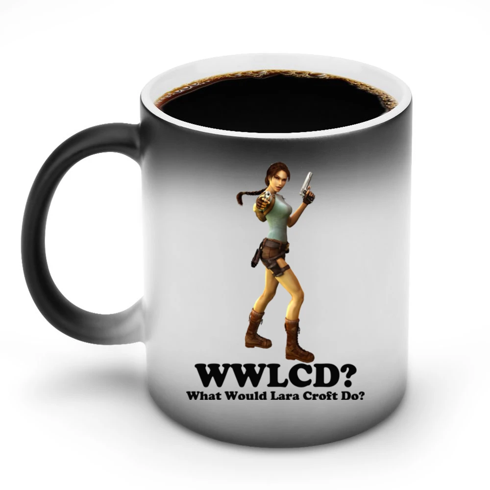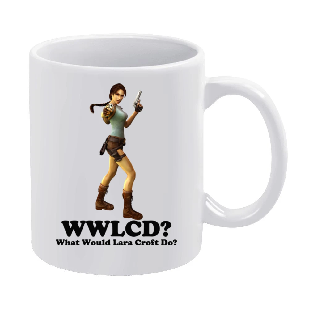 Crafted from high-quality ceramic, the What Would Lara Croft Do Mug is designed for both durability and aesthetic appeal. The glossy finish not only enhances the vibrant colors of the design but also protects against wear and tear. Its generous capacity allows for ample servings of your favorite coffee, tea, or hot beverage, making it an essential companion for those long gaming sessions or adventurous mornings.