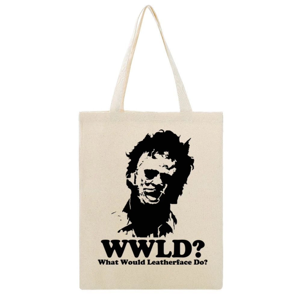 Introducing our What Would Leatherface Do Canvas Tote Bag, a unique accessory that combines horror-inspired art with practicality. This tote bag serves not only as a striking conversation starter but also as a must-have daily companion for your errands, shopping trips, or outings.