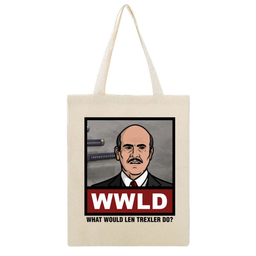 In conclusion, the “What Would Len Trexler Do” WWLD Archer Canvas Tote Bag combines style, functionality, and inspiration in one amazing product. Don’t miss your chance to own a piece of art that you can carry with you everywhere. Elevate your daily routine, make a statement, and share the ethos of Len Trexler with this exceptional tote. Get yours today and transform your carrying experience!