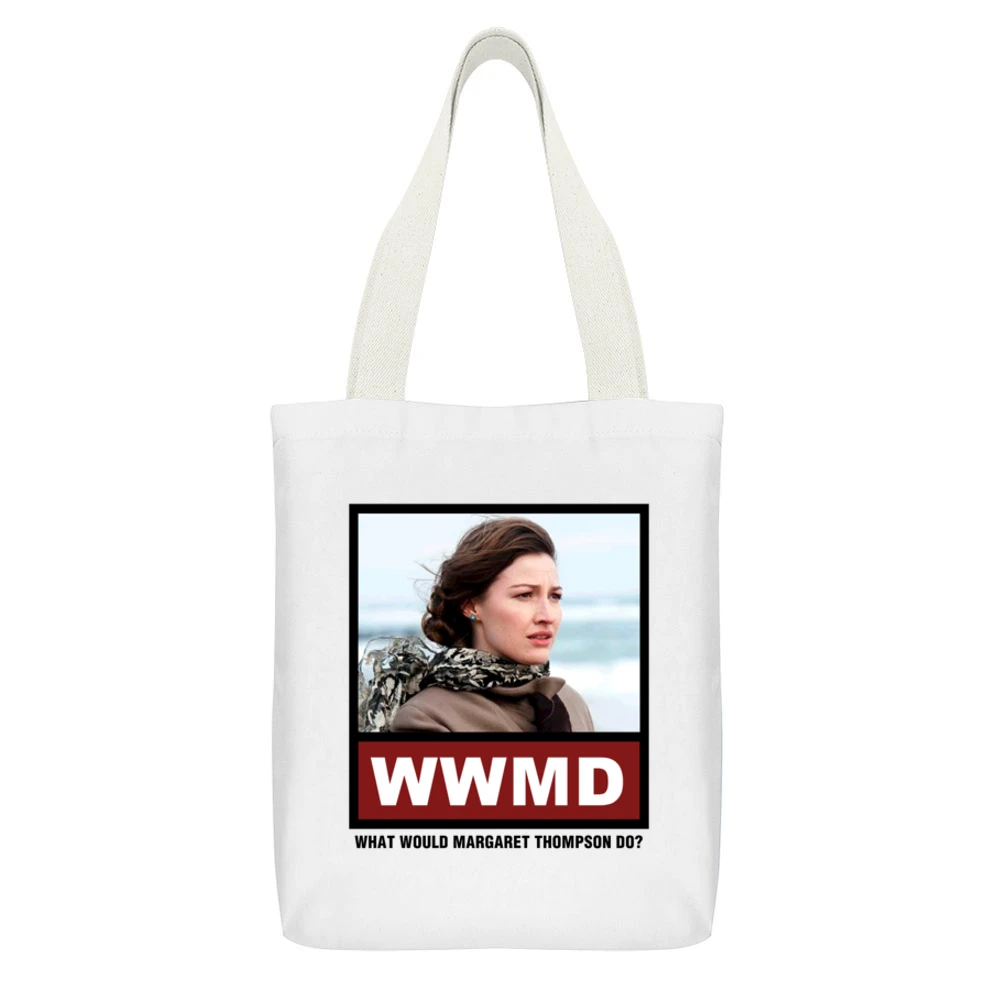 Introducing the **What Would Margaret Thompson Do WWMD Boardwalk Empire Canvas Tote Bag**, a perfect blend of style and practicality. Featuring an eye-catching design inspired by the iconic aesthetics of Boardwalk Empire, this tote bag is not only a fashionable statement piece but also an everyday essential.