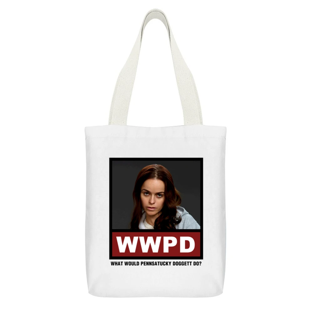 Introducing the ultimate accessory for fans of “Orange is the New Black”—the What Would Pennsatucky Doggett Do WWPD Orange is the New Black Canvas Tote Bag. Perfectly blending a statement-making design with everyday utility, this tote bag exemplifies the spirit of resilience and boldness inspired by the beloved character Pennsatucky Doggett.