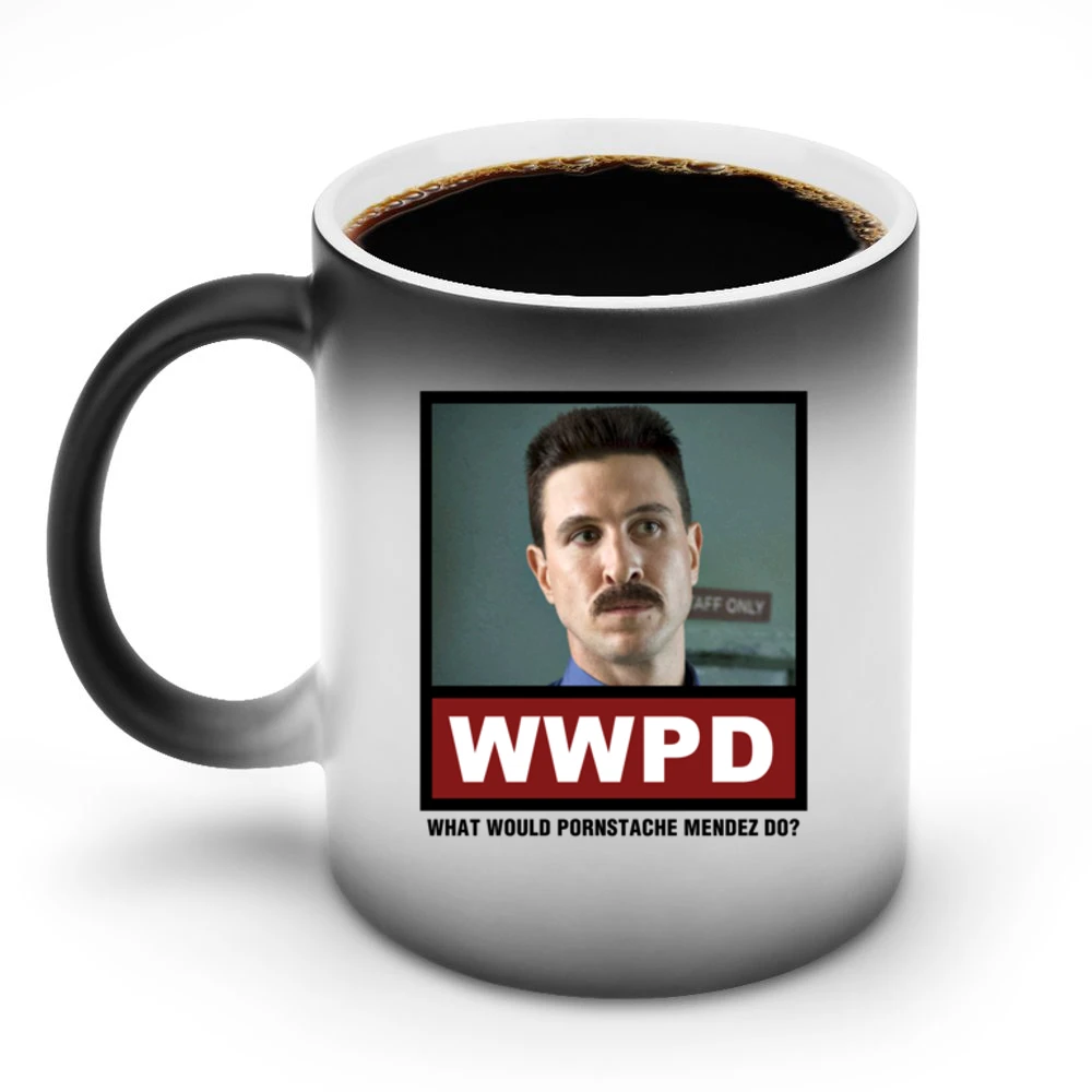 Introducing the “What Would Pornstache Mendez Do WWPD Orange is the New Black Mug” – a unique ceramic coffee mug that combines bold humor with practical utility. Perfect for fans of the hit show, this mug not only serves as a fun conversation starter but also enhances your coffee-drinking experience.
