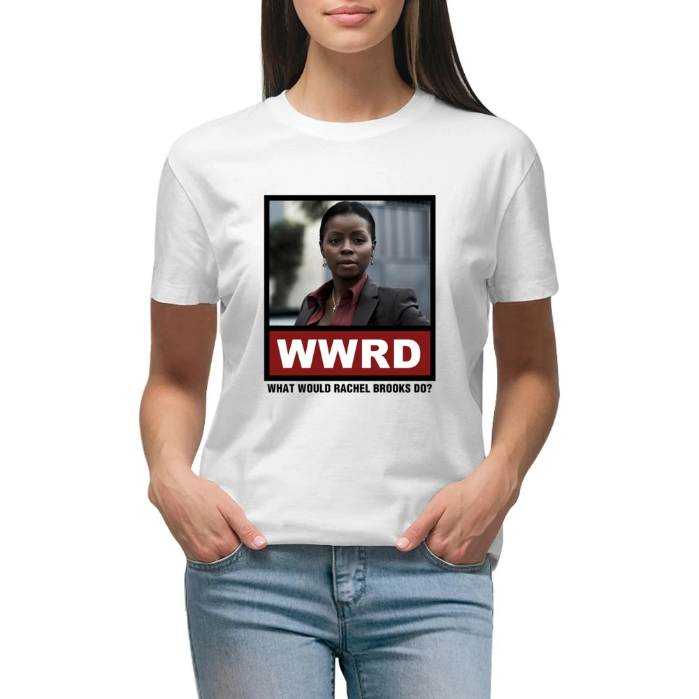 Constructed from high-quality cotton, the “What Would Rachel Brooks Do WWRD Justified T-Shirt” offers both durability and breathability. It’s designed with a relaxed fit, making it an ideal choice for layering under a jacket or wearing solo during those warmer months. The versatile nature of this t-shirt makes it suitable for a variety of activities—from running errands to enjoying a laid-back weekend brunch with friends.