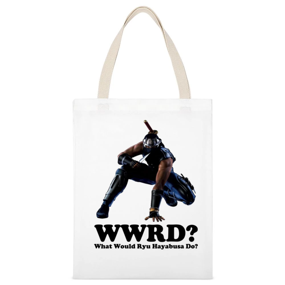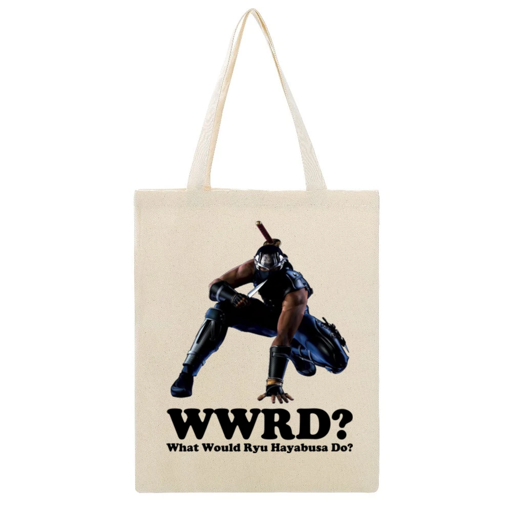 In conclusion, the “What Would Ryu Hayabusa Do Canvas Tote Bag” is more than just an accessory; it’s a statement. With its high-quality materials and striking design, this tote bag captures the spirit of a beloved character, offering fans a way to express their dedication. Don’t miss out on the opportunity to own this versatile and eye-catching tote—add it to your cart today!