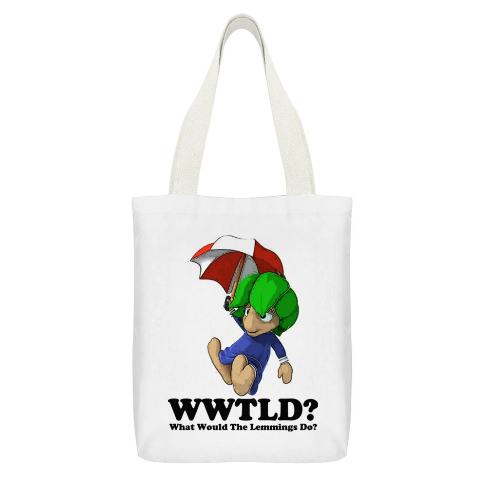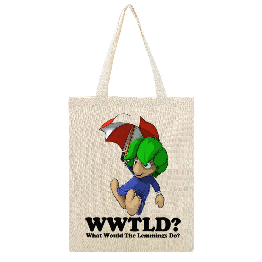 In conclusion, the What Would The Lemmings Do Canvas Tote Bag not only showcases a fun and quirky graphic that allows you to express your individuality, but it also provides practical benefits that cater to your daily activities. Upgrade your accessory game with this eye-catching canvas tote bag and embrace the adventurous spirit of the lemmings. Don’t miss out on adding this unique piece to your collection—grab yours today!