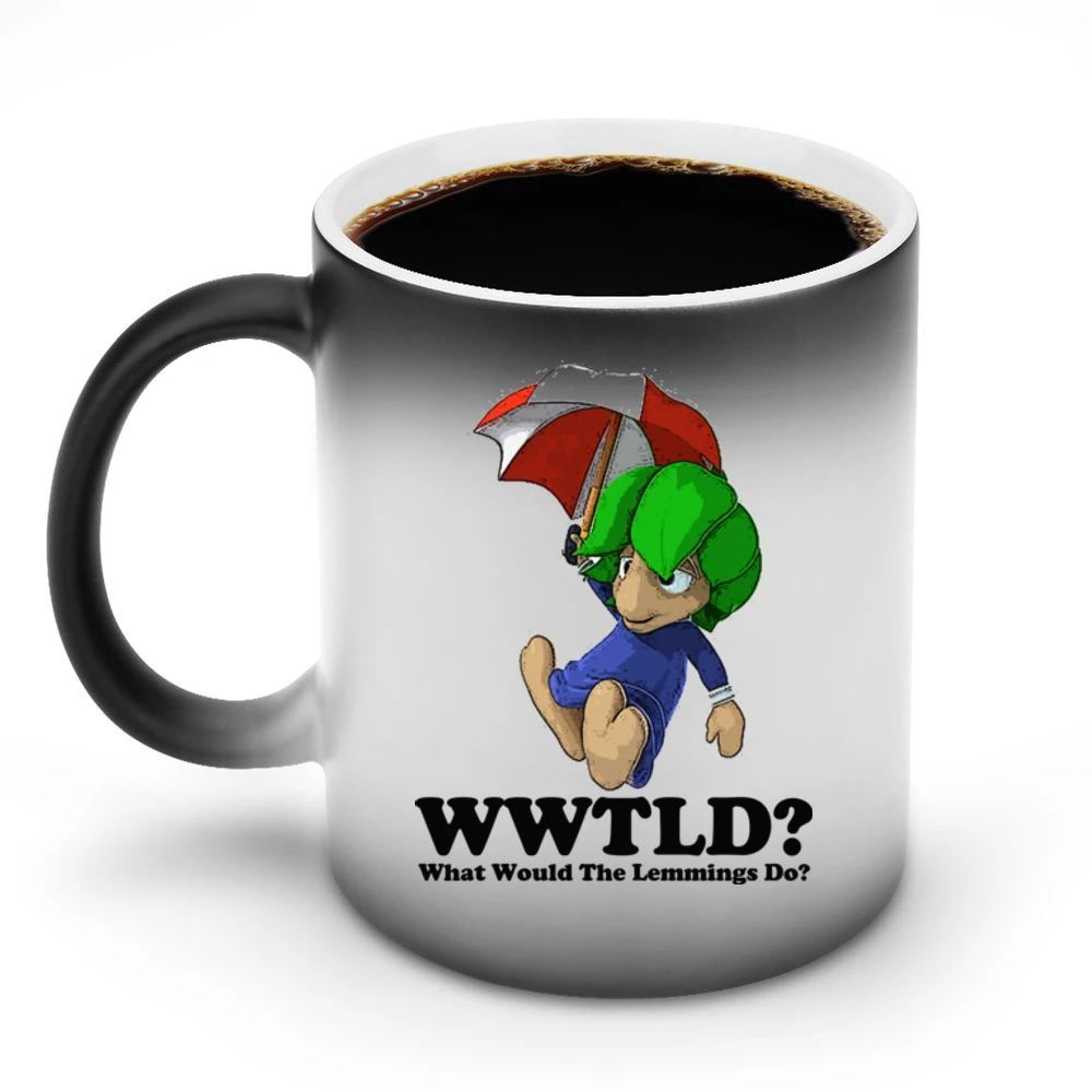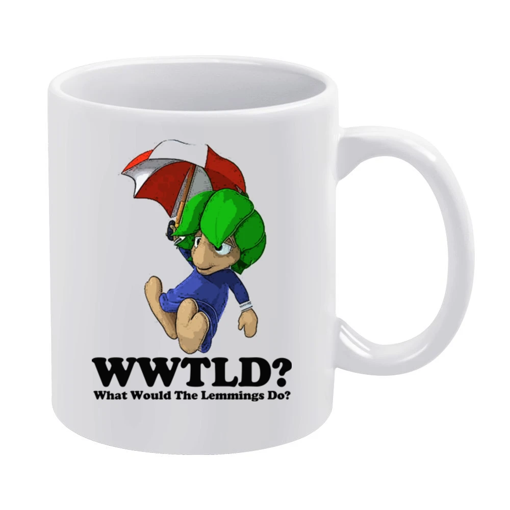 Introducing the What Would The Lemmings Do Mug, a unique ceramic coffee mug that blends whimsical design with everyday practicality. This mug not only serves as your perfect companion for coffee, tea, or hot cocoa, but it also features an inspiring design that sparks curiosity and conversation.