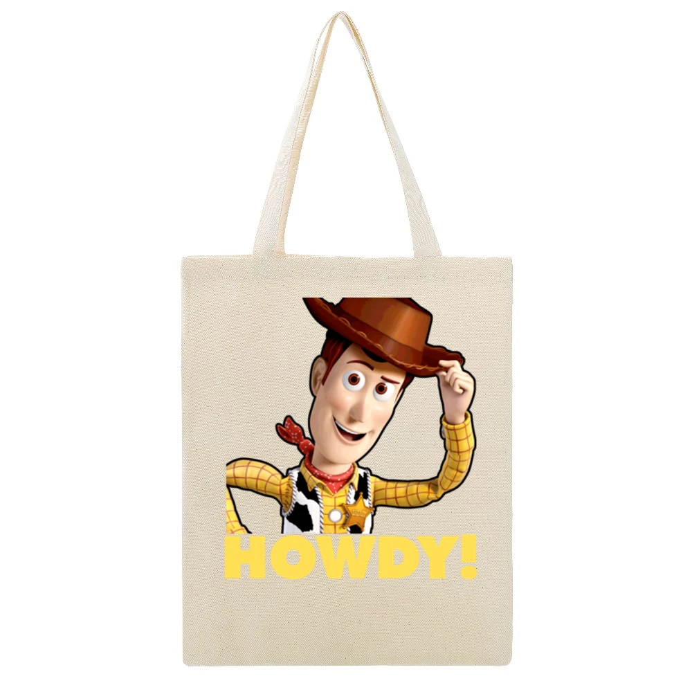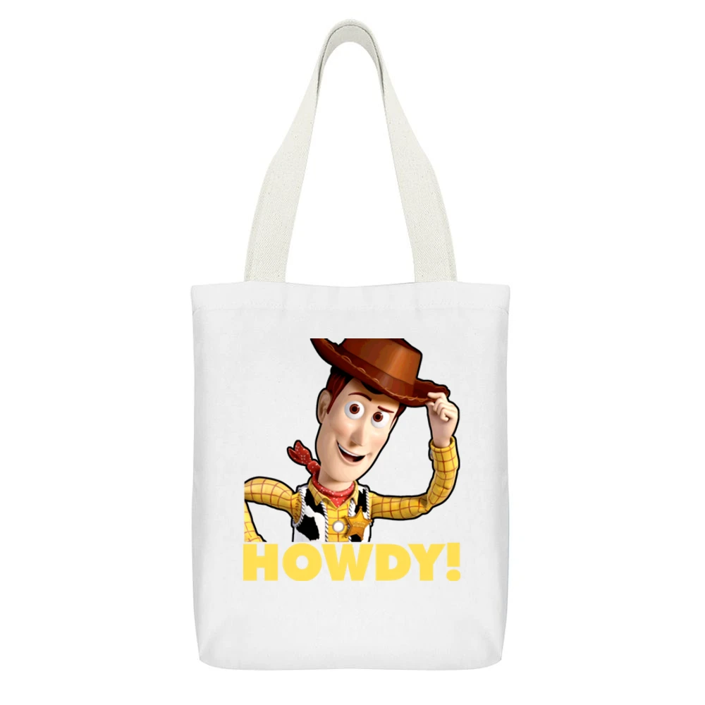 The Woody Toy Story Kids Canvas Tote Bag showcases an eye-catching illustration of Woody, capturing his adventurous spirit and nostalgic charm. This design channels the bright and whimsical elements from the Toy Story franchise, bringing joy to children and invoking cherished memories for parents. The vibrant colors and playful aesthetics make it an excellent accessory for daily outings, picnics, or playdates, ensuring that your little one always carries a piece of their favorite adventure with them.
