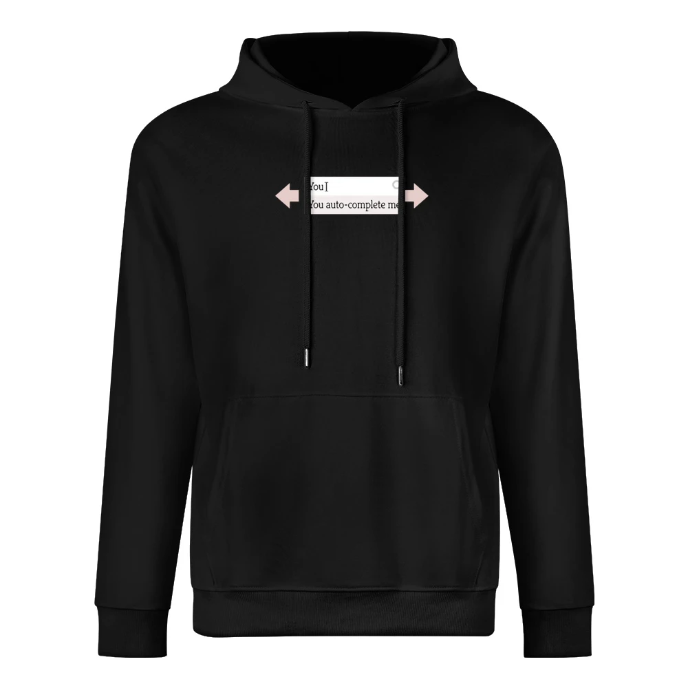 Introducing the “You Auto Complete Me” Funny Hoodie – a perfect blend of humor and geek culture! This trendy hoodie not only showcases a charming and witty design but also promises unmatched comfort and warmth.