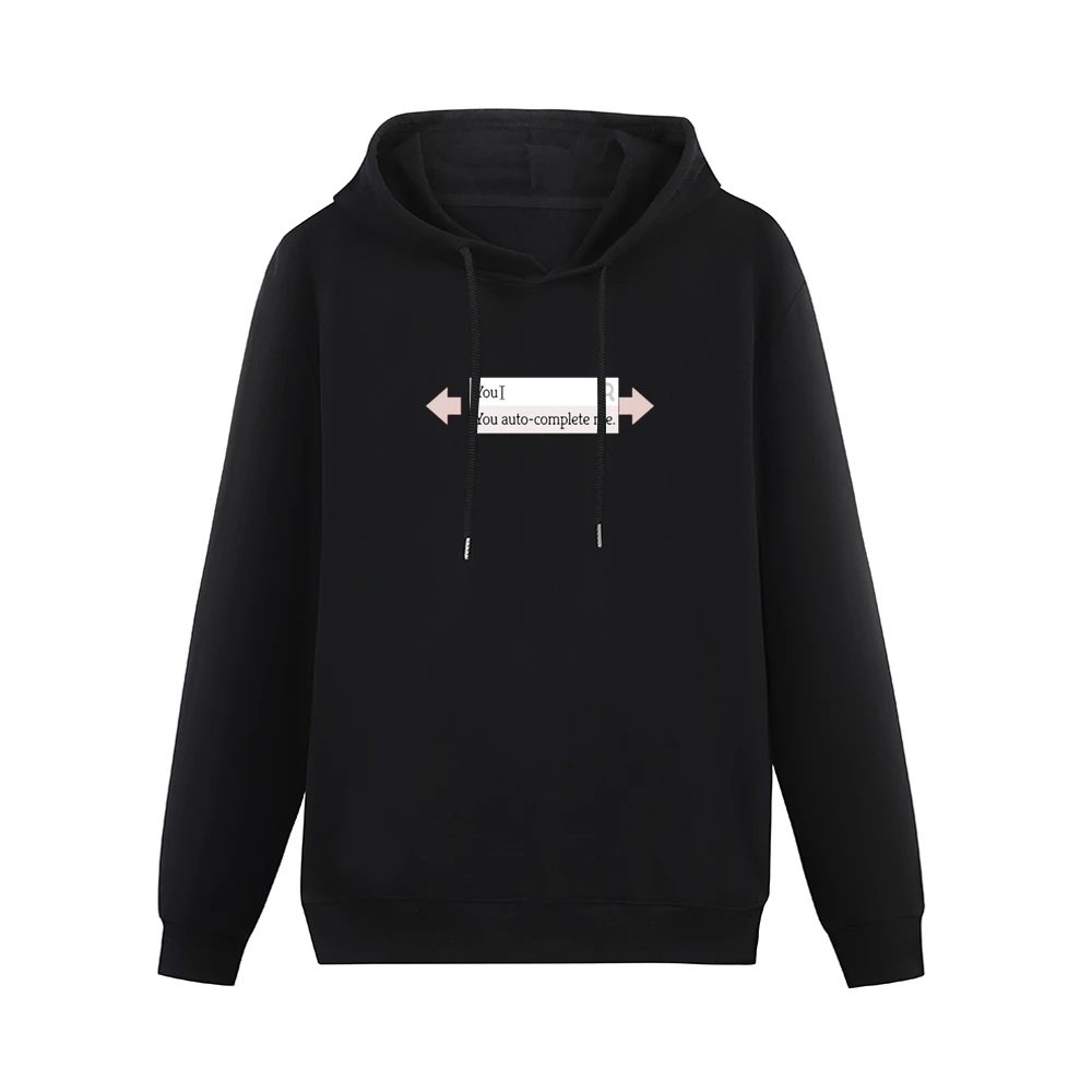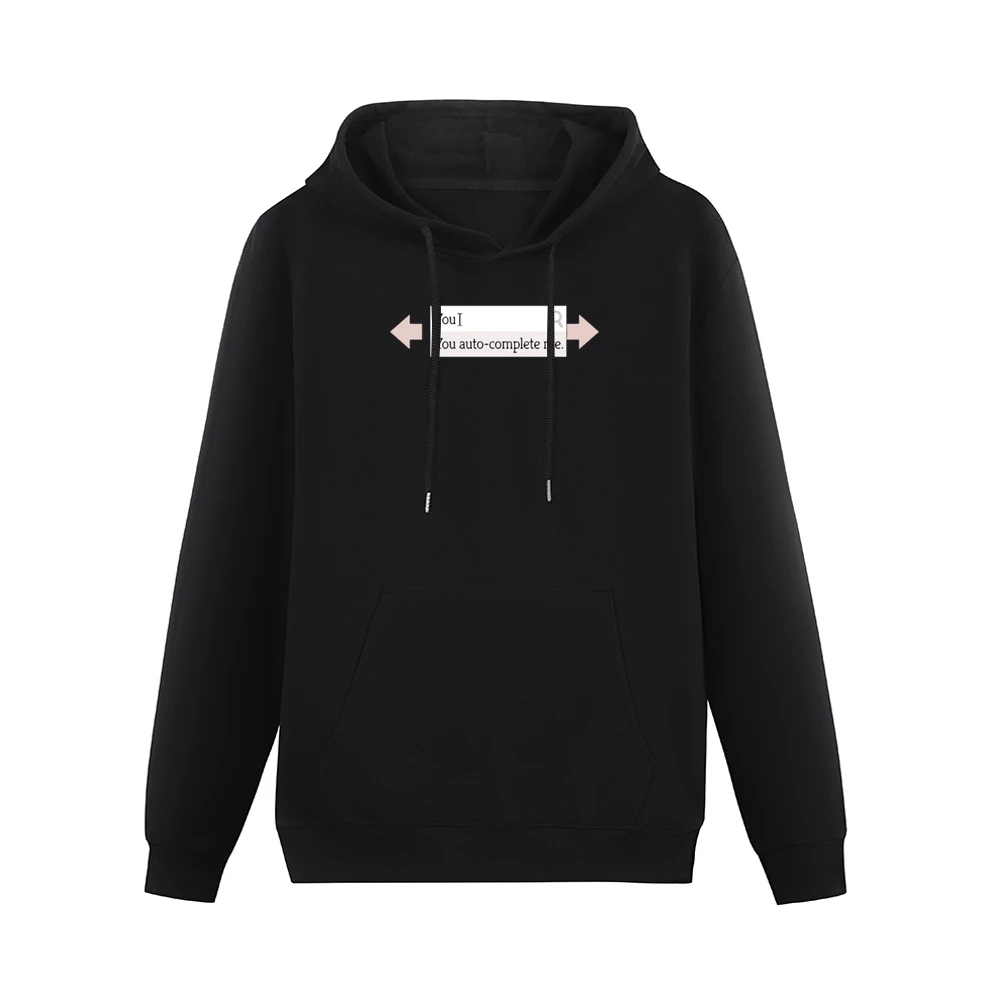 Every aspect of the “You Auto Complete Me” hoodie has been thoughtfully crafted, from the comfortable drawstring hood to the spacious front pocket, which is perfect for holding your phone or keeping your hands warm during those chilly evenings. Whether you’re out for a casual stroll, attending a tech conference, or simply enjoying a cozy day indoors, this hoodie is your go-to choice. It’s an excellent gift for friends and family members who cherish humor and geek culture, making it a thoughtful present for birthdays or holidays.